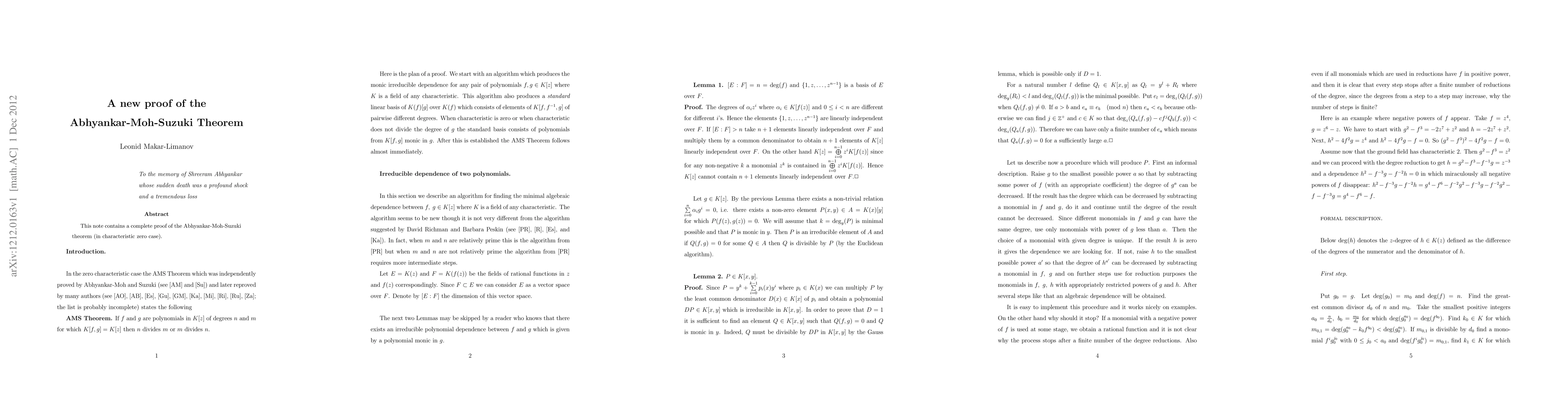 This note contains a complete proof of the Abhyankar-Moh-Suzuki theorem (in characteristic zero case).