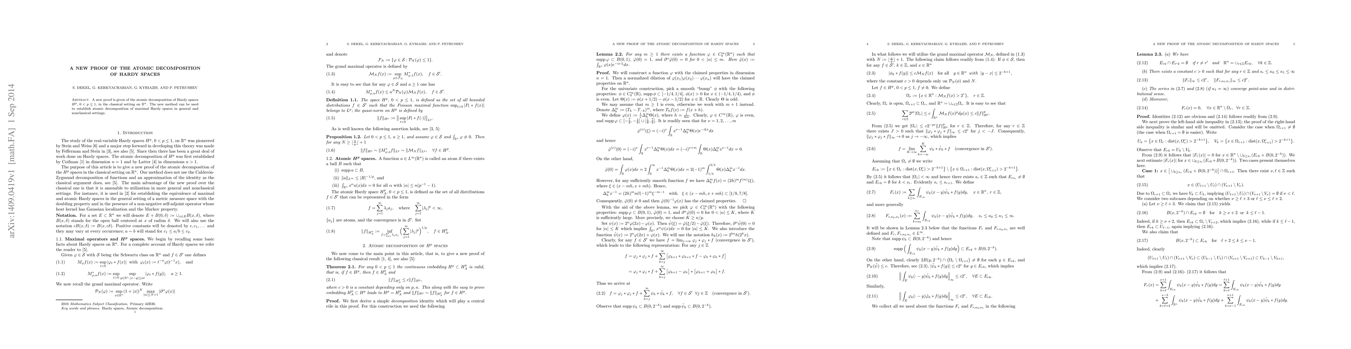 Summary: This paper presents a novel proof for the atomic decomposition of classical Hardy spaces Hp in Rn, and extends this method to establish atomic decompositions for maximal Hardy spaces in both general and non-classical settings.