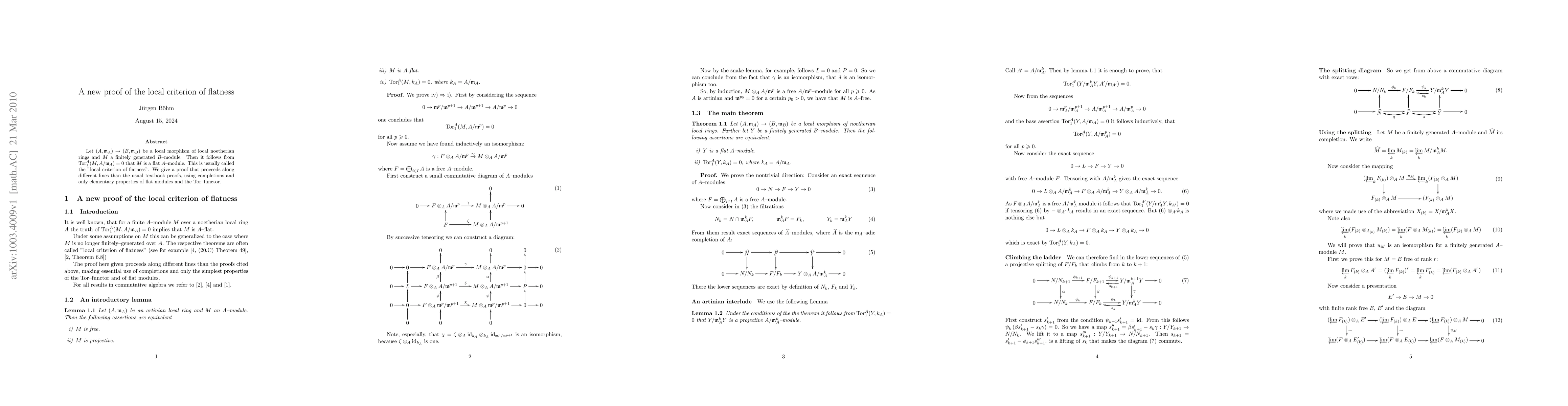 A new proof of the local criterion of flatness demonstrates that Tor^A_1(M,A/m_A) = 0 implies a finitely generated B-module M is flat as an A-module.