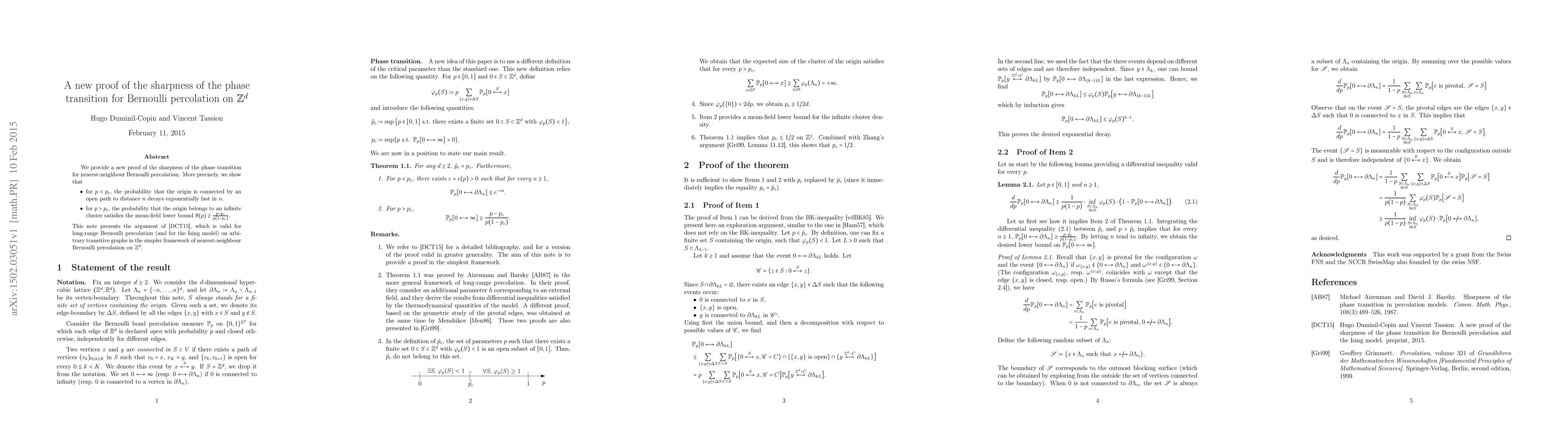 nearest-neighbour Bernoulli percolation. More precisely, we show that
