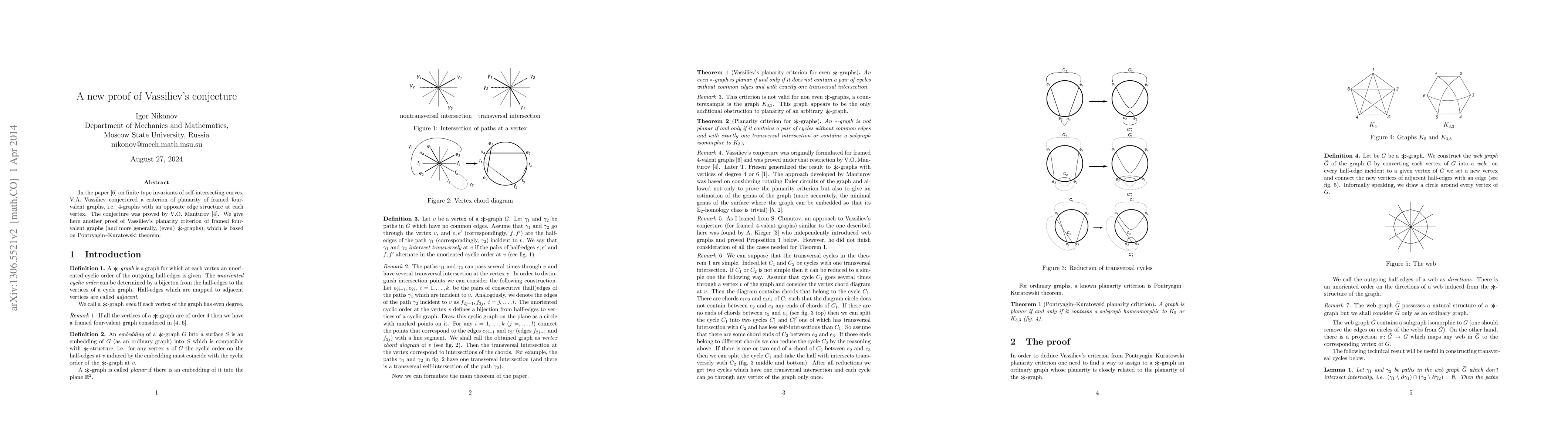 Researchers provide a new proof for Vassiliev's planarity criterion, which determines if a graph can be drawn on a plane without edges intersecting, using the Pontryagin-Kuratowski theorem.