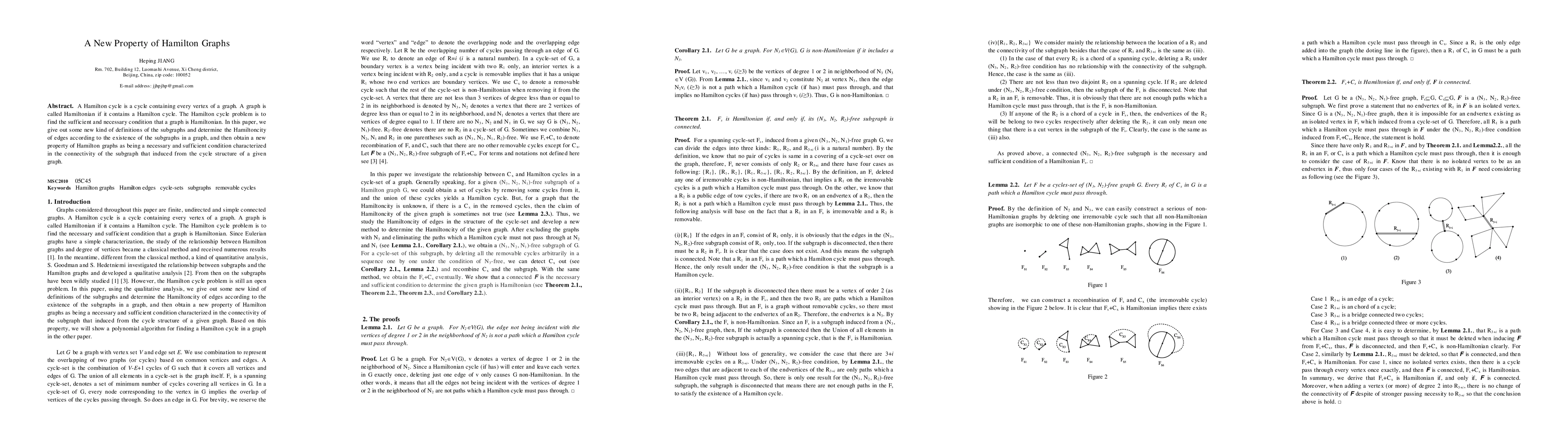 The paper investigates the relationship between removable cycles (Cx) and Hamilton cycles in a cycle-set of a graph, developing a new method to determine the Hamiltonicity of a given graph by analyzing the connectivity of subgraphs induced from cycle structures.