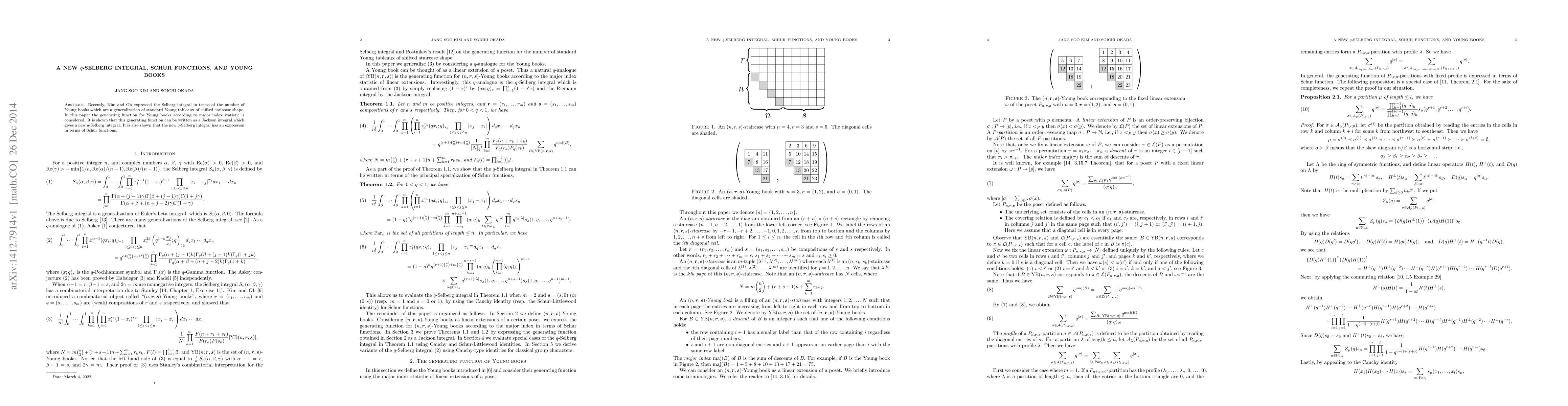 Recently, Kim and Oh expressed the Selberg integral in terms of the number of Young books which are a generalization of standard Young tableaux of shifted staircase shape. In this paper the generating function for Young books according to major index statistic is considered. It is shown that this generating function can be written as a Jackson integral which gives a new $q$-Selberg integral. It is also shown that the new $q$-Selberg integral has an expression in terms of Schur functions.