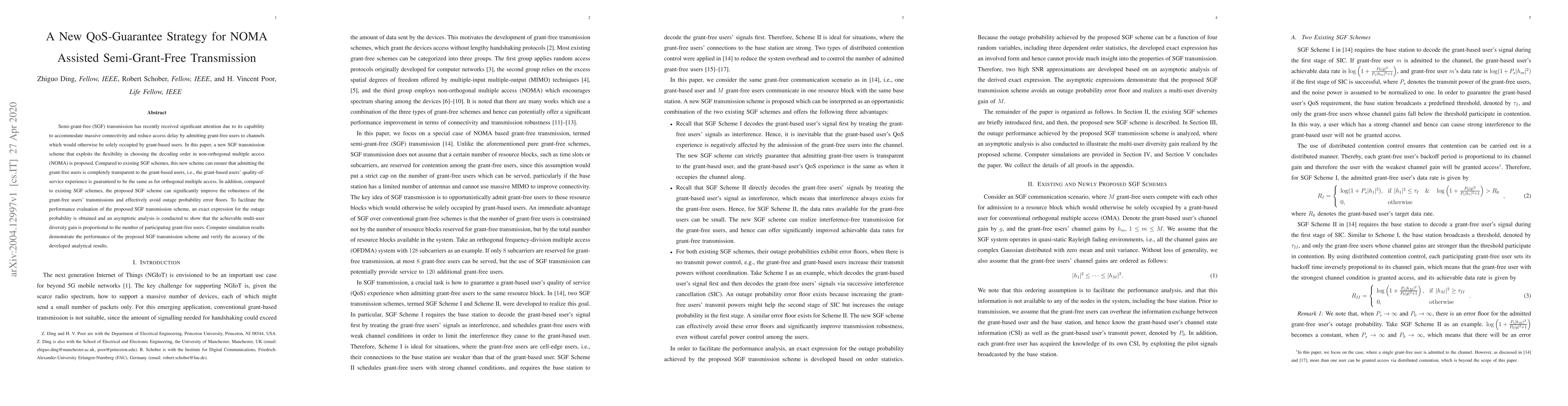 This paper proposes a new QoS-guarantee strategy for semi-grant-free transmission using NOMA, ensuring that grant-free users do not degrade the service quality of grant-based users. The new scheme enhances robustness and reduces outage probability, with analytical expressions and simulations validating its performance.