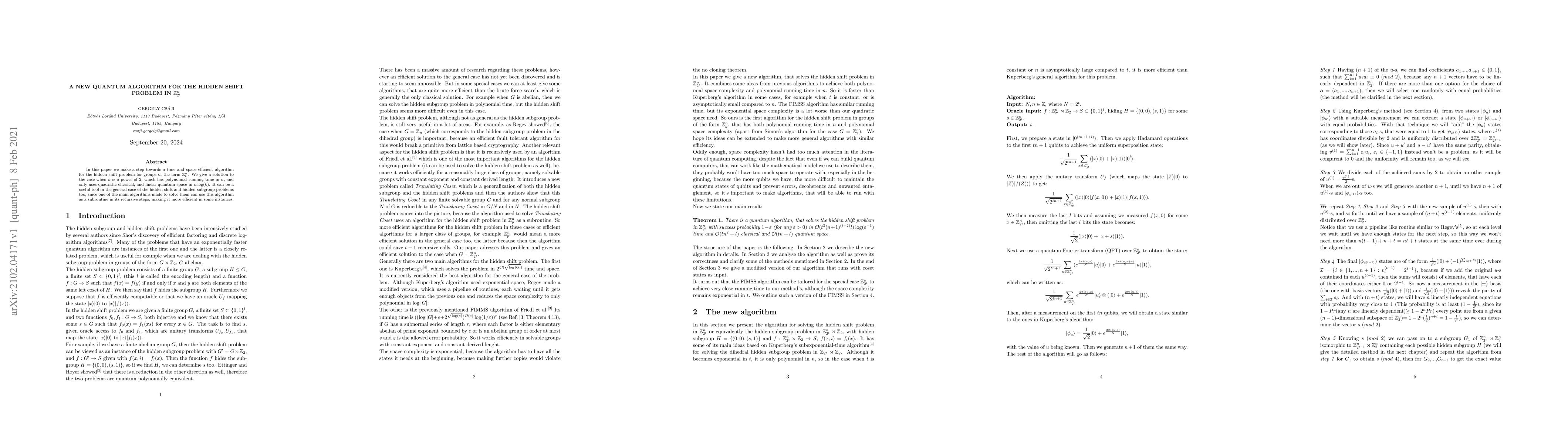 This paper presents a new quantum algorithm for solving the hidden shift problem in groups of the form $\mathbb{Z}_{2^t}^n$ with polynomial time complexity and efficient space usage. The algorithm can enhance the efficiency of broader hidden shift and hidden subgroup problem solutions when used as a subroutine.