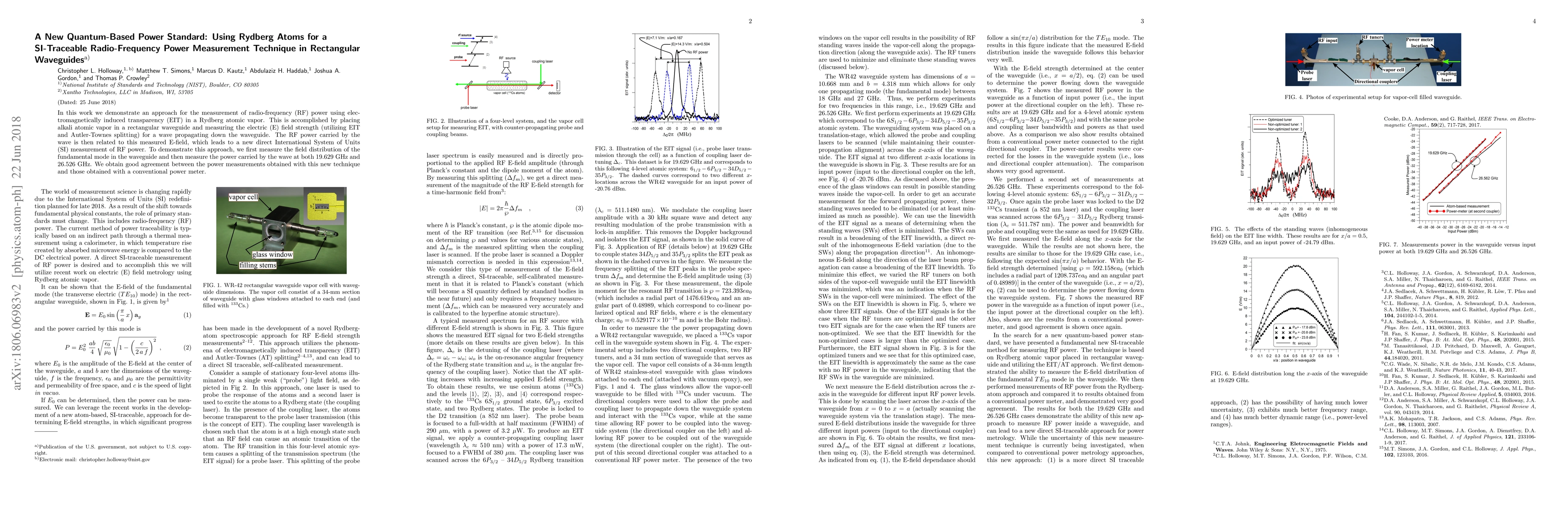 In this work we demonstrate an approach for the measurement of radio-frequency (RF) power using electromagnetically induced transparency (EIT) in a Rydberg atomic vapor. This is accomplished by placing alkali atomic vapor in a rectangular waveguide and measuring the electric (E) field strength (utilizing EIT and Autler-Townes splitting) for a wave propagating down the waveguide. The RF power carried by the wave is then related to this measured E-field, which leads to a new direct International System of Units (SI) measurement of RF power. To demonstrate this approach, we first measure the field distribution of the fundamental mode in the waveguide and then measure the power carried by the wave at both 19.629 GHz and 26.526 GHz. We obtain good agreement between the power measurements obtained with this new technique and those obtained with a conventional power meter.