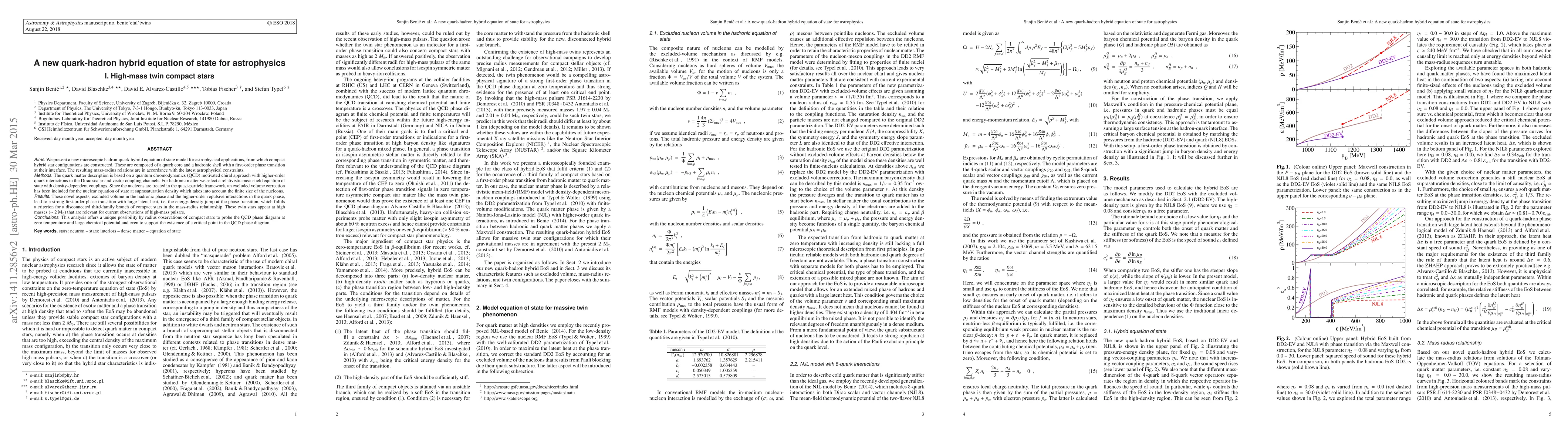 This research introduces a new hybrid equation of state model for astrophysical applications, featuring quark cores and hadronic shells with a first-order phase transition. The model incorporates an excluded volume correction for hadronic matter and higher-order quark interactions, resulting in a strong phase transition and twin compact stars of high mass (~2 M☉), which could aid in probing the QCD phase diagram.