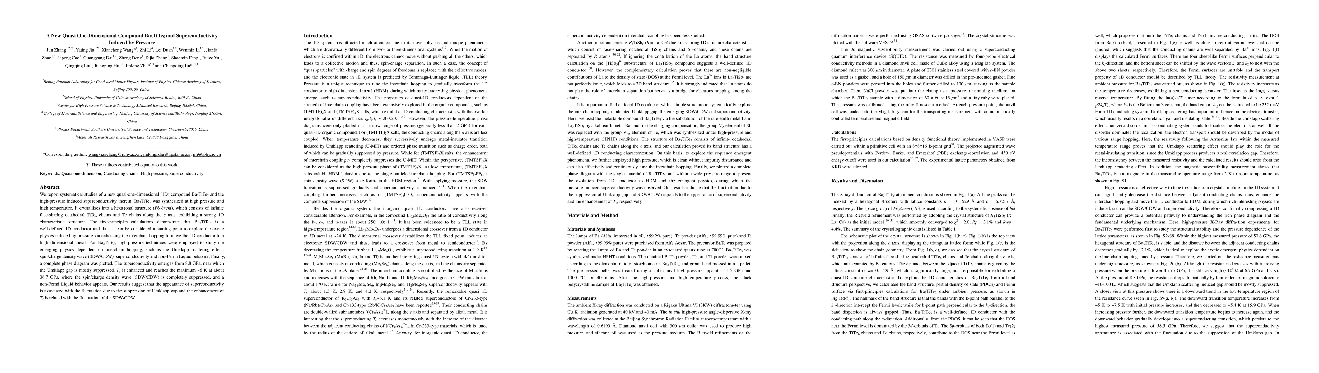 We report systematical studies of a new quasi-one-dimensional (1D) compound Ba3TiTe5 and the high-pressure induced superconductivity therein. Ba3TiTe5 was synthesized at high pressure and high temperature. It crystallizes into a hexagonal structure (P63/mcm), which consists of infinite face-sharing octahedral TiTe6 chains and Te chains along the c axis, exhibiting a strong 1D characteristic structure. The first-principles calculations demonstrate that Ba3TiTe5 is a well-defined 1D conductor and thus, it can be considered a starting point to explore the exotic physics induced by pressure via enhancing the interchain hopping to move the 1D conductor to a high dimensional metal. For Ba3TiTe5, high-pressure techniques were employed to study the emerging physics dependent on interchain hopping, such as the Umklapp scattering effect, spin/charge density wave (SDW/CDW), superconductivity and non-Fermi Liquid behavior. Finally, a complete phase diagram was plotted. The superconductivity emerges from 8.8 GPa, near which the Umklapp gap is mostly suppressed. Tc is enhanced and reaches the maximum ~6 K at about 36.7 GPa, where the spin/charge density wave (SDW/CDW) is completely suppressed, and a non-Fermi Liquid behavior appears. Our results suggest that the appearance of superconductivity is associated with the fluctuation due to the suppression of Umklapp gap and the enhancement of Tc is related with the fluctuation of the SDW/CDW.