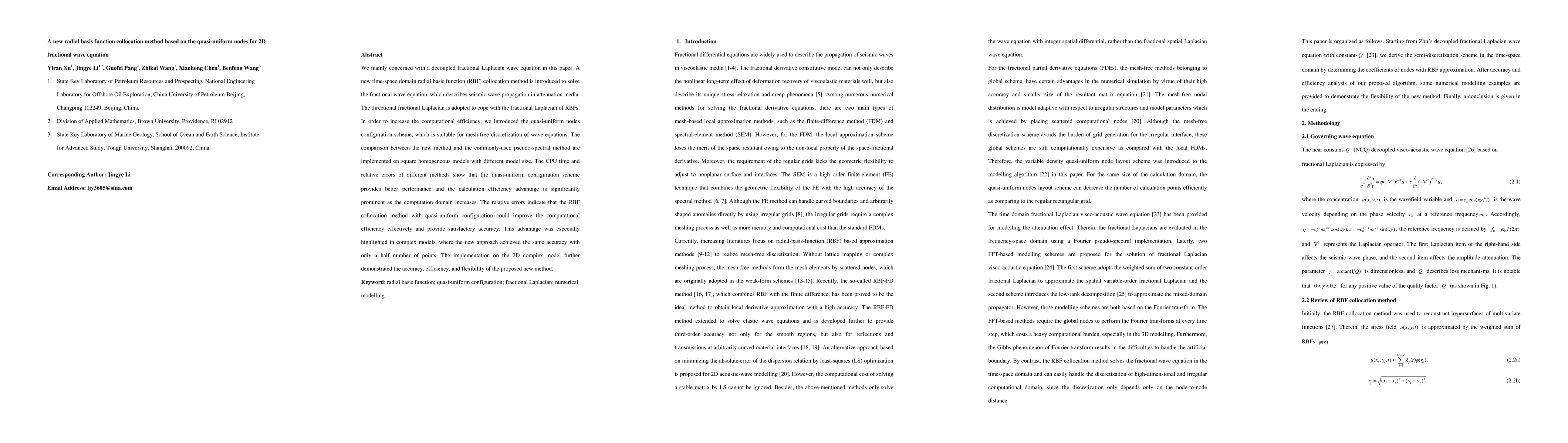 This paper introduces a new radial basis function collocation method based on quasi-uniform nodes to solve a decoupled fractional Laplacian wave equation, demonstrating improved computational efficiency and accuracy compared to the pseudo-spectral method, especially in complex models with larger domains.