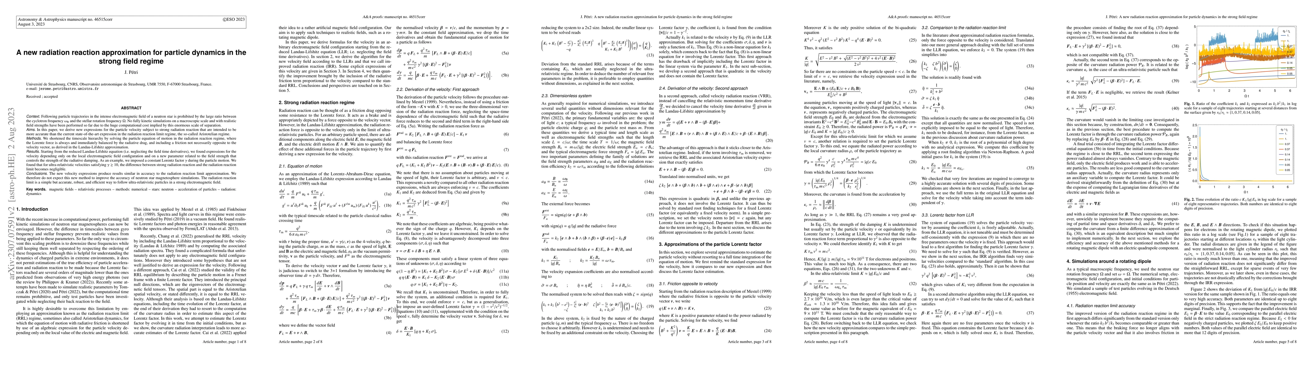 (Abridged) Following particle trajectories in the intense electromagnetic field of a neutron star is prohibited by the large ratio between the cyclotron frequency $\omega_{\rm B}$ and the stellar rotation frequency $\Omega$. No fully kinetic simulations on a macroscopic scale and with realistic field strengths have been performed so far due to the huge computational cost implied by this enormous scale of separation. In this paper, we derive new expressions for the particle velocity subject to strong radiation reaction that are intended to be more accurate than the current state-of-the-art expression in the radiation reaction limit regime, the so-called Aristotelian regime. We shortened the timescale hierarchy by solving the particle equation of motion in the radiation reaction regime, where the Lorentz force is always and immediately balanced by the radiative drag, and including a friction not necessarily opposite to the velocity vector, as derived in the Landau-Lifshitz approximation. Starting from the reduced Landau-Lifshitz equation (i.e. neglecting the field time derivatives), we found expressions for the velocity depending only on the local electromagnetic field configuration and on a new parameter related to the field strength that controls the strength of the radiative damping. The new velocity expressions produce results similar in accuracy to the radiation reaction limit approximation. We therefore do not expect this new method to improve the accuracy of neutron star magnetosphere simulations. The radiation reaction limit is a simple but accurate, robust, and efficient way to follow ultra-relativistic particles in a strong electromagnetic field.