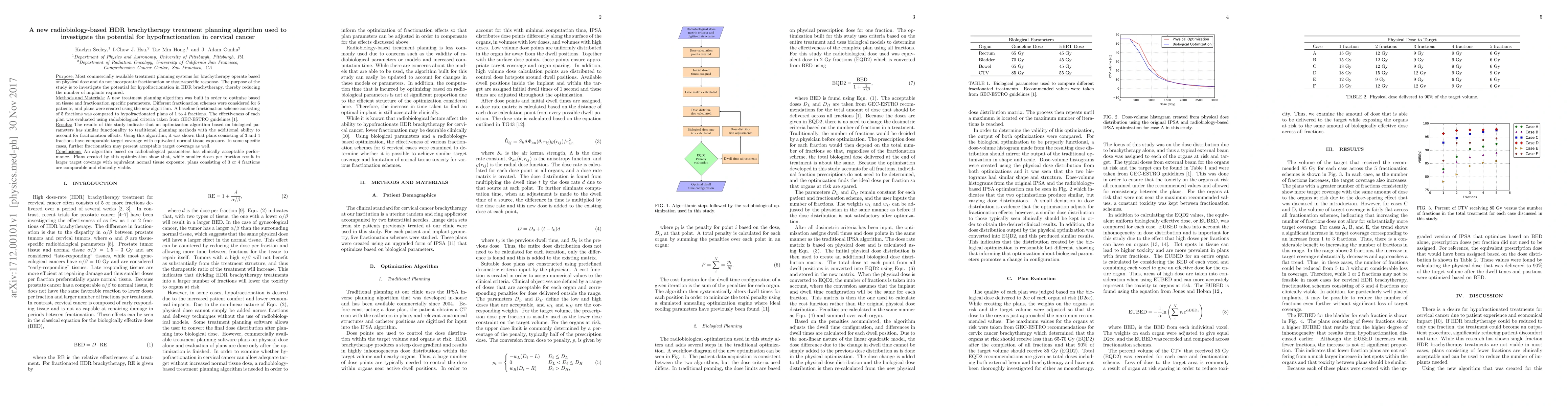 This study introduces a new radiobiology-based HDR brachytherapy treatment planning algorithm to explore hypofractionation in cervical cancer, demonstrating that it can optimize treatment plans based on tissue and fractionation-specific parameters, achieving comparable target coverage and normal tissue exposure with fewer fractions compared to traditional methods.