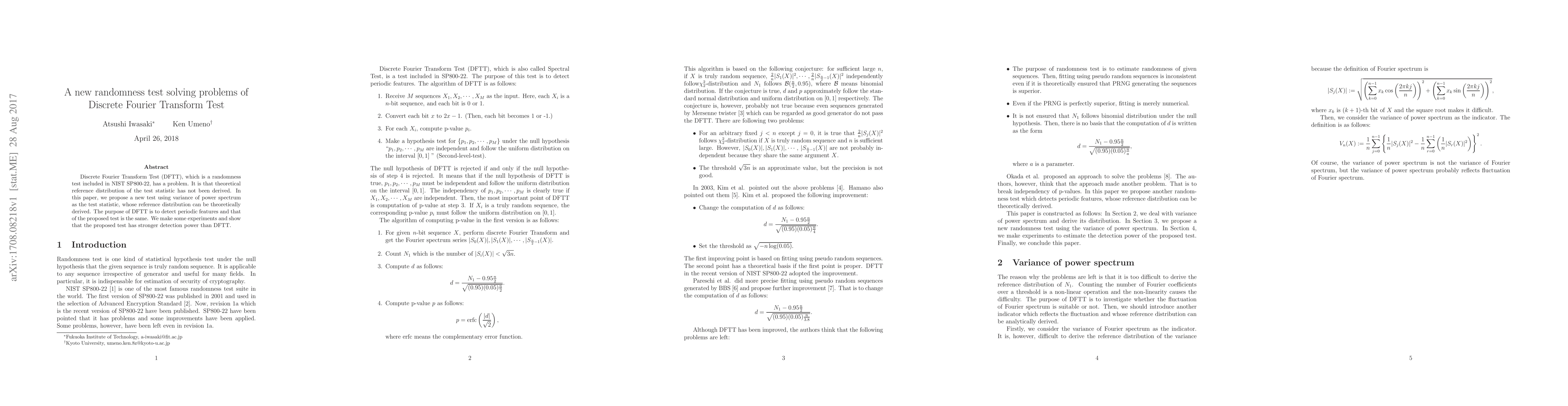 This paper proposes a new randomness test to address the lack of a theoretical reference distribution in the Discrete Fourier Transform Test (DFTT). The new test uses variance of the power spectrum as its statistic, providing a theoretically derived reference distribution, and demonstrates stronger detection power in experiments.