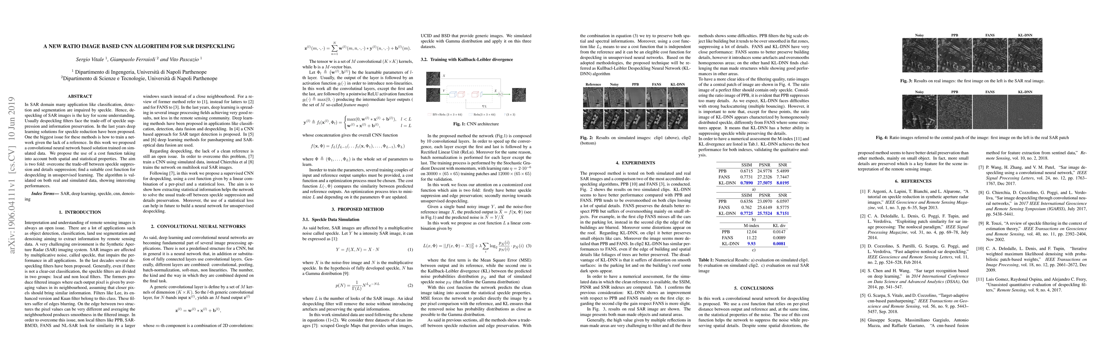 This paper proposes a novel CNN-based algorithm for SAR image despeckling, trained on simulated data using a cost function that balances spatial and statistical properties. The aim is to overcome the trade-off between speckle suppression and detail preservation, and to develop an effective unsupervised learning approach for despeckling. The algorithm demonstrates promising performance on both real and simulated SAR data.