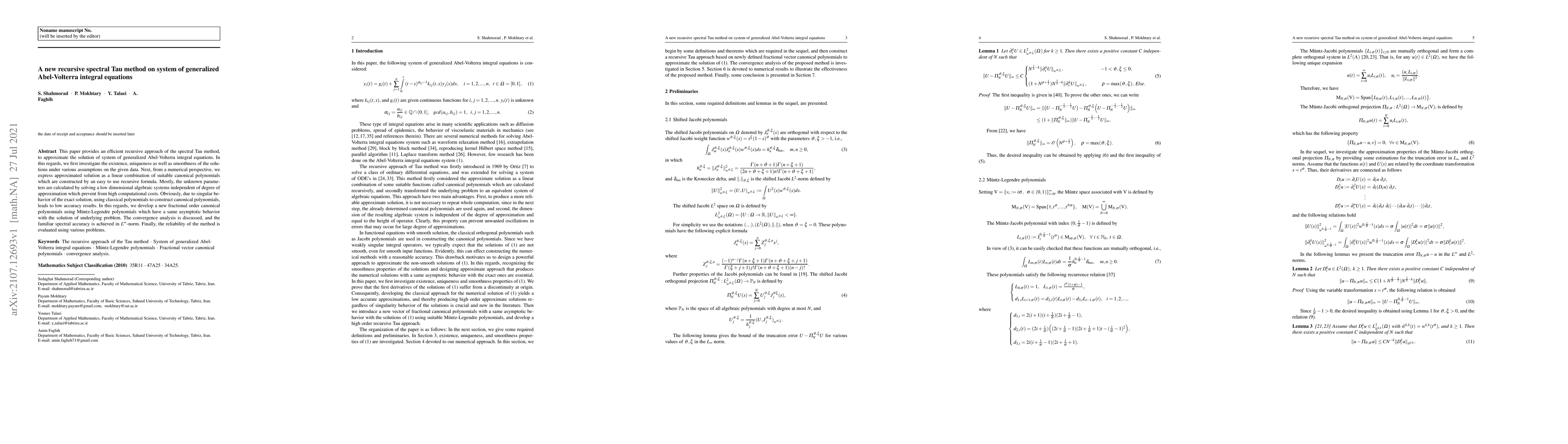 A new recursive spectral Tau method is introduced for solving systems of generalized Abel-Volterra integral equations, offering efficient and accurate solutions with fractional order canonical polynomials.