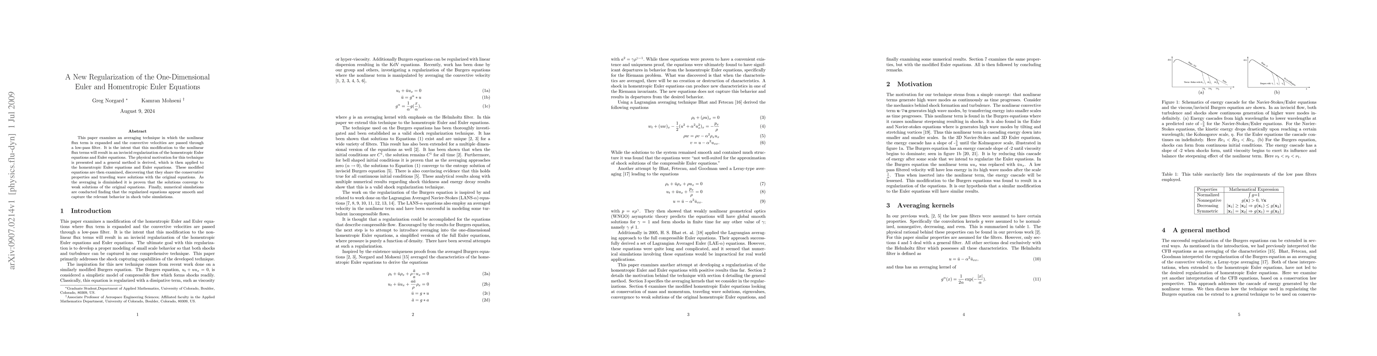 This paper examines an averaging technique in which the nonlinear flux term is expanded and the convective velocities are passed through a low-pass filter. It is the intent that this modification to the nonlinear flux terms will result in an inviscid regularization of the homentropic Euler equations and Euler equations. The physical motivation for this technique is presented and a general method is derived, which is then applied to the homentropic Euler equations and Euler equations. These modified equations are then examined, discovering that they share the conservative properties and traveling wave solutions with the original equations. As the averaging is diminished it is proven that the solutions converge to weak solutions of the original equations. Finally, numerical simulations are conducted finding that the regularized equations appear smooth and capture the relevant behavior in shock tube simulations.