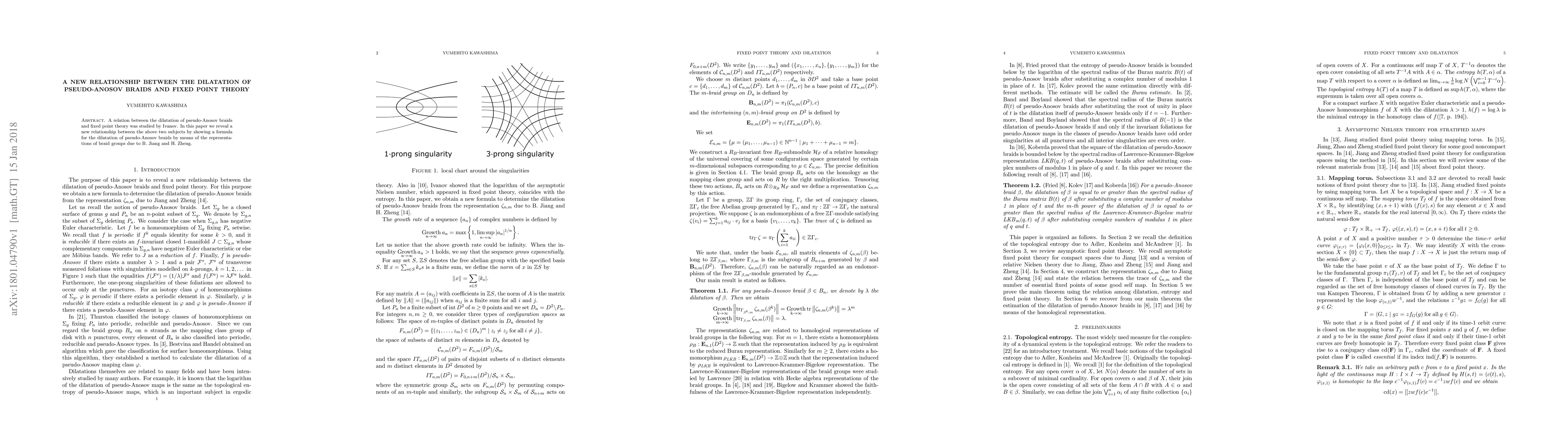 This paper establishes a novel connection between the dilatation of pseudo-Anosov braids and fixed point theory, presenting a formula for the braid dilatation using representations of braid groups developed by B. Jiang and H. Zheng.