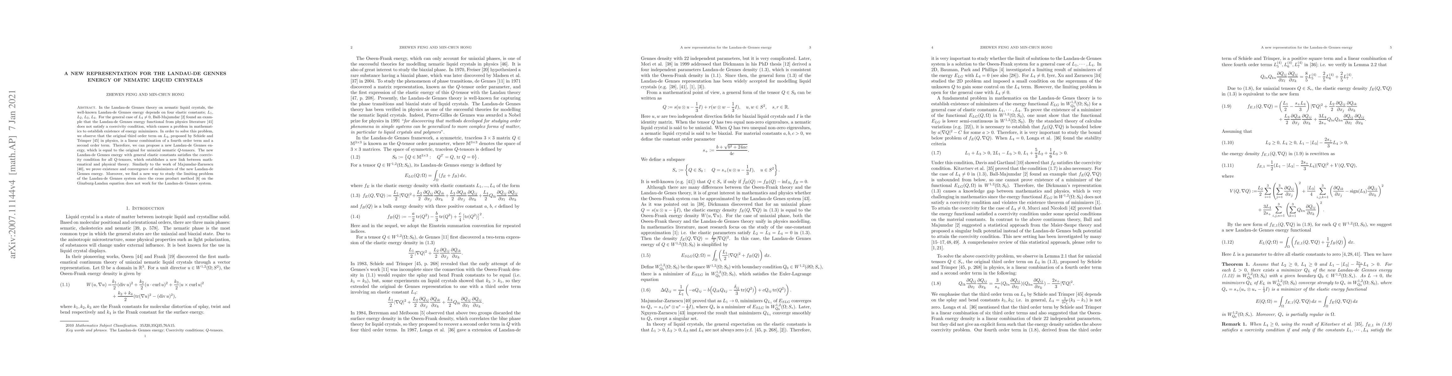 This paper proposes a new representation of the Landau-de Gennes energy for nematic liquid crystals that satisfies the coercivity condition, addressing the issue of non-satisfactory energy functionals in the original model. The new energy formulation ensures the existence and convergence of energy minimizers, bridging the gap between mathematical and physical theories.