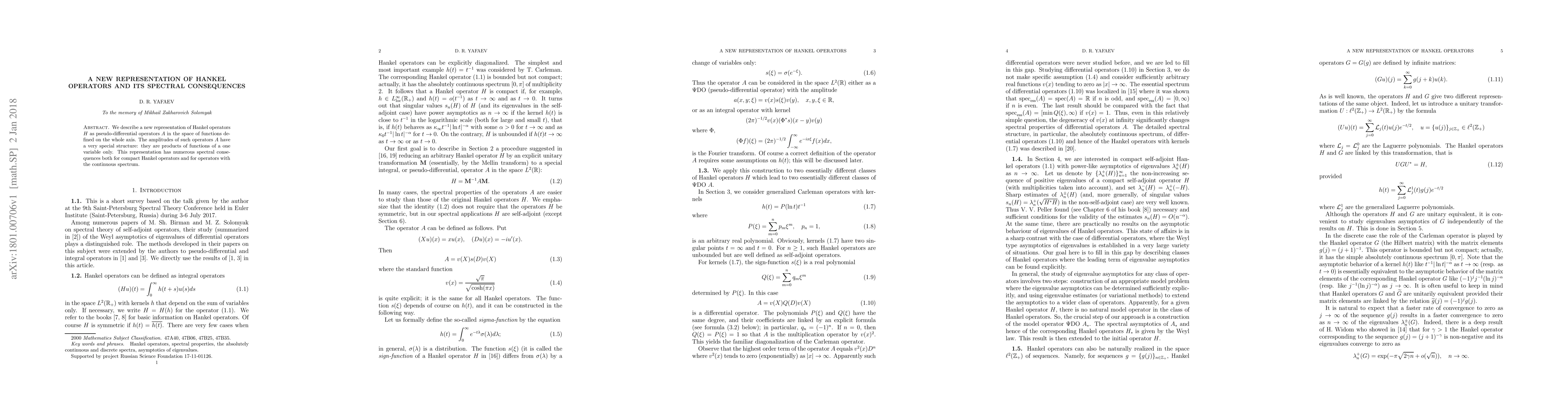 We describe a new representation of Hankel operators $H$ as pseudo-differential operators $A$ in the space of functions defined on the whole axis. The amplitudes of such operators $A$ have a very special structure: they are products of functions of a one variable only. This representation has numerous spectral consequences both for compact Hankel operators and for operators with the continuous spectrum.