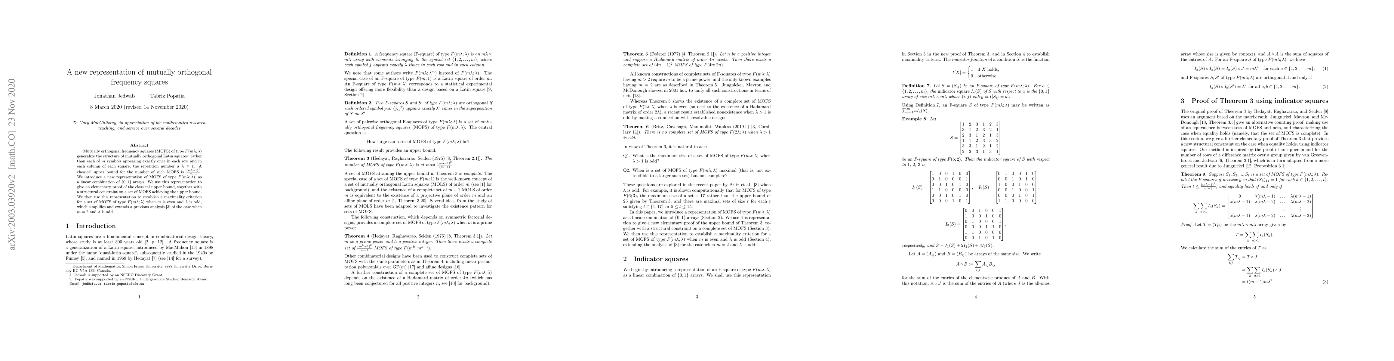 Mutually orthogonal frequency squares (MOFS) of type $F(m\lambda;\lambda)$ generalize the structure of mutually orthogonal Latin squares: rather than each of $m$ symbols appearing exactly once in each row and in each column of each square, the repetition number is $\lambda \ge 1$. A classical upper bound for the number of such MOFS is $\frac{(m\lambda-1)^2}{m-1}$. We introduce a new representation of MOFS of type $F(m\lambda;\lambda)$, as a linear combination of $\{0,1\}$ arrays. We use this representation to give an elementary proof of the classical upper bound, together with a structural constraint on a set of MOFS achieving the upper bound. We then use this representation to establish a maximality criterion for a set of MOFS of type $F(m\lambda;\lambda)$ when $m$ is even and $\lambda$ is odd, which simplifies and extends a previous analysis [T. Britz, N.J. Cavenagh, A. Mammoliti, I.M. Wanless, Mutually orthogonal binary frequency squares, Electron. J. Combin., 27(#P3.7), 2020, 26 pages] of the case when $m=2$ and $\lambda$ is odd.