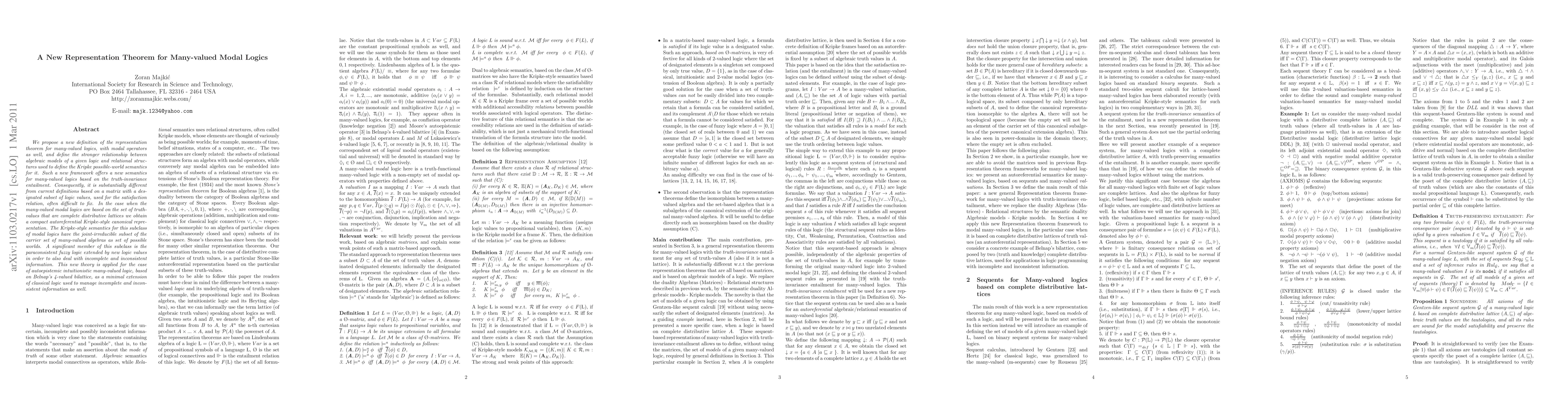 We propose a new definition of the representation theorem for many-valued logics, with modal operators as well, and define the stronger relationship between algebraic models of a given logic and relational structures used to define the Kripke possible-world semantics for it. Such a new framework offers a new semantics for many-valued logics based on the truth-invariance entailment. Consequently, it is substantially different from current definitions based on a matrix with a designated subset of logic values, used for the satisfaction relation, often difficult to fix. In the case when the many-valued modal logics are based on the set of truth-values that are complete distributive lattices we obtain a compact autoreferential Kripke-style canonical representation. The Kripke-style semantics for this subclass of modal logics have the joint-irreducible subset of the carrier set of many-valued algebras as set of possible worlds. A significant member of this subclass is the paraconsistent fuzzy logic extended by new logic values in order to also deal with incomplete and inconsistent information. This new theory is applied for the case of autoepistemic intuitionistic many-valued logic, based on Belnap's 4-valued bilattice, as a minimal extension of classical logic used to manage incomplete and inconsistent information as well.