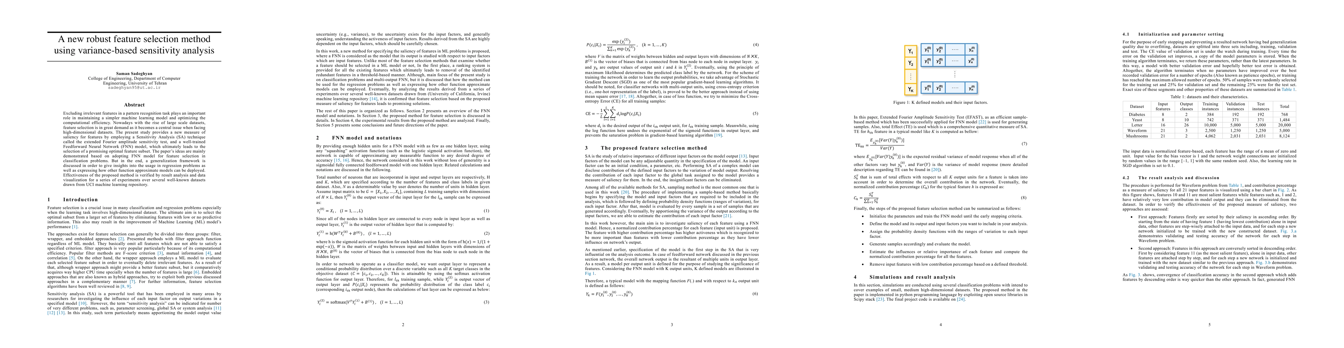 This study introduces a new feature selection method that uses variance-based sensitivity analysis to select the most relevant features in machine learning models, improving computational efficiency. The proposed method is demonstrated on several datasets and shows promising results, with potential applications in classification and regression problems.