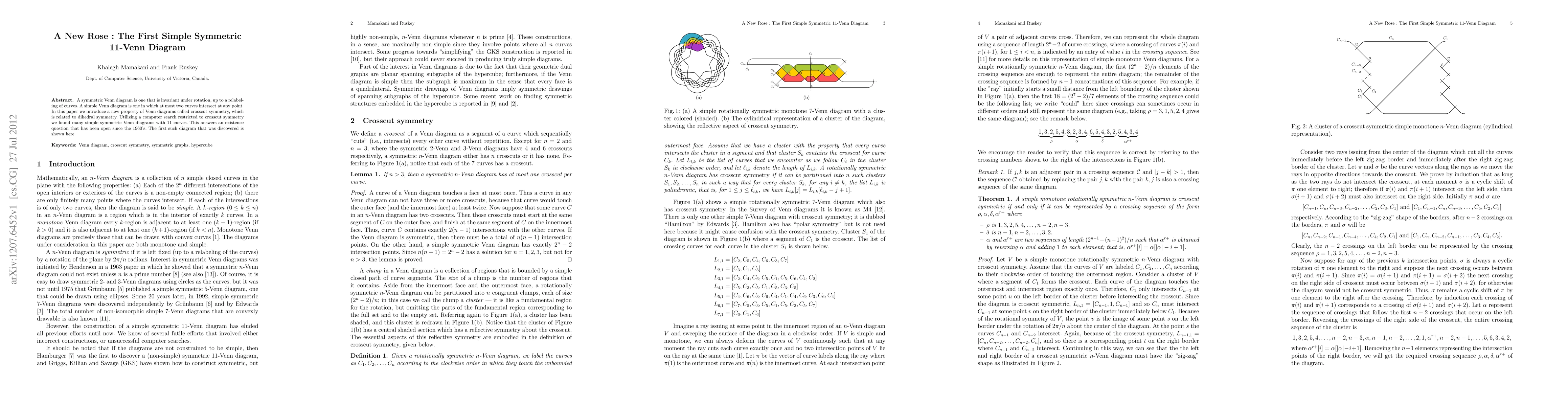 Researchers have found the first simple symmetric 11-Venn diagram with crosscut symmetry, answering an open question from the 1960s, using a computer search.
