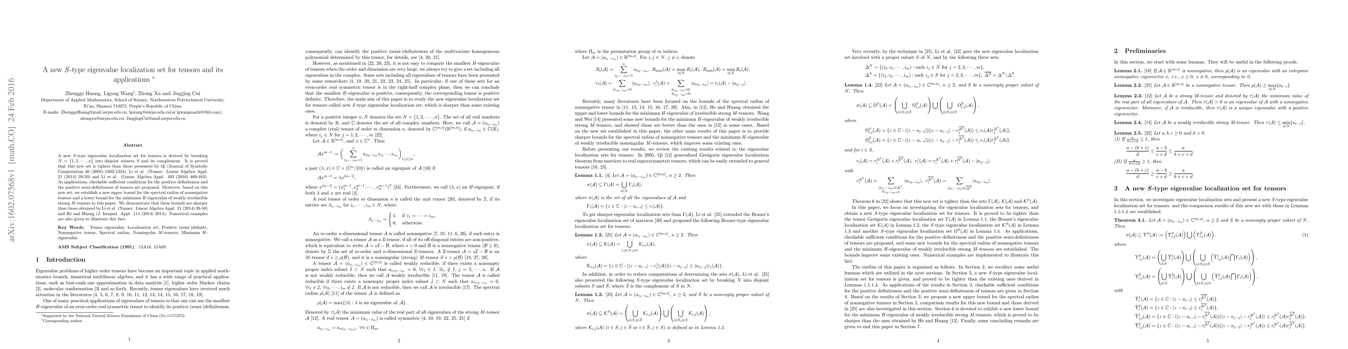 This paper introduces a new S-type eigenvalue localization set for tensors, which is tighter than existing methods. It provides sharper bounds for the positive definiteness, positive semi-definiteness, spectral radius, and minimum H-eigenvalue of tensors, with numerical examples demonstrating its effectiveness.
