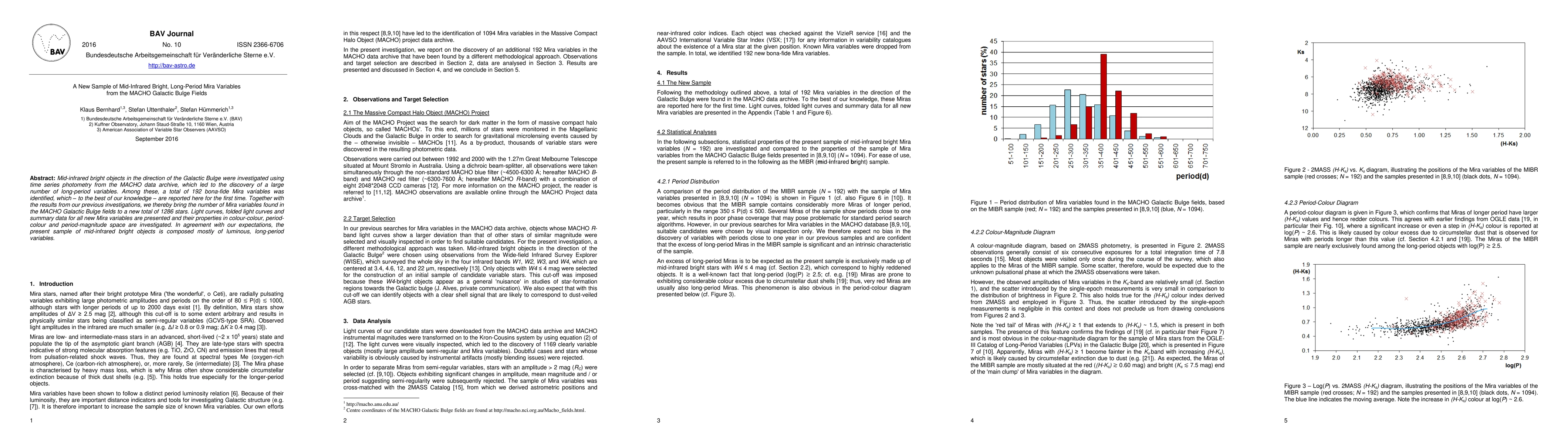 This paper reports the discovery of 192 new mid-infrared bright, long-period Mira variables in the Galactic Bulge using MACHO data, bringing the total number of Mira variables in these fields to 1286. The study investigates their properties in various colour-colour, period-colour, and period-magnitude spaces.