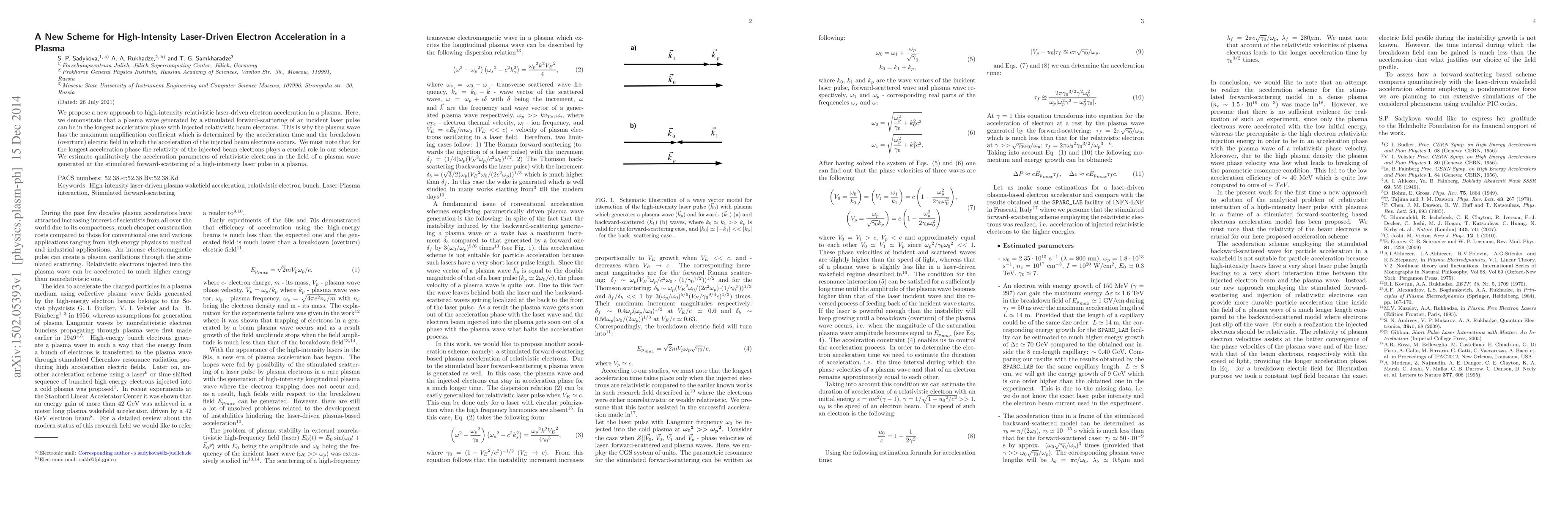 This paper proposes a new method for accelerating relativistic electrons using high-intensity laser pulses in a plasma. It suggests that a plasma wave generated by stimulated forward-scattering of the laser pulse can maximize electron acceleration, with the relativity of the injected electrons playing a crucial role in this process.