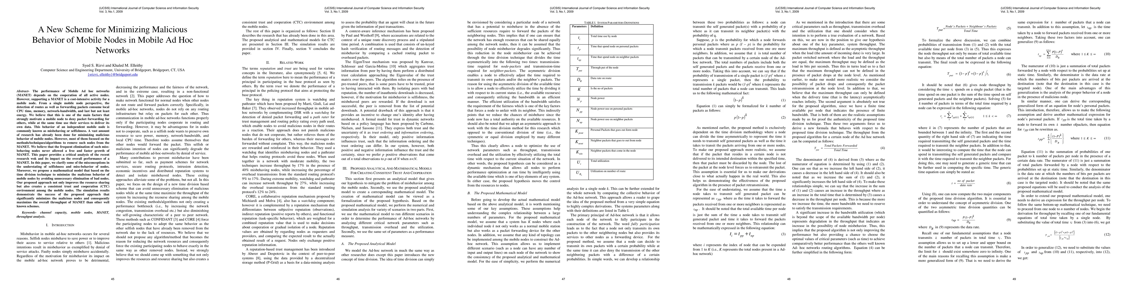This paper critically analyzes existing methods for minimizing malicious behavior in Mobile Ad hoc networks (MANET) and proposes a new mathematical model based on time division to reduce selfishness without frequent elimination of nodes. The proposed approach enhances resource sharing and creates a consistent trust and cooperation environment, significantly improving overall throughput.