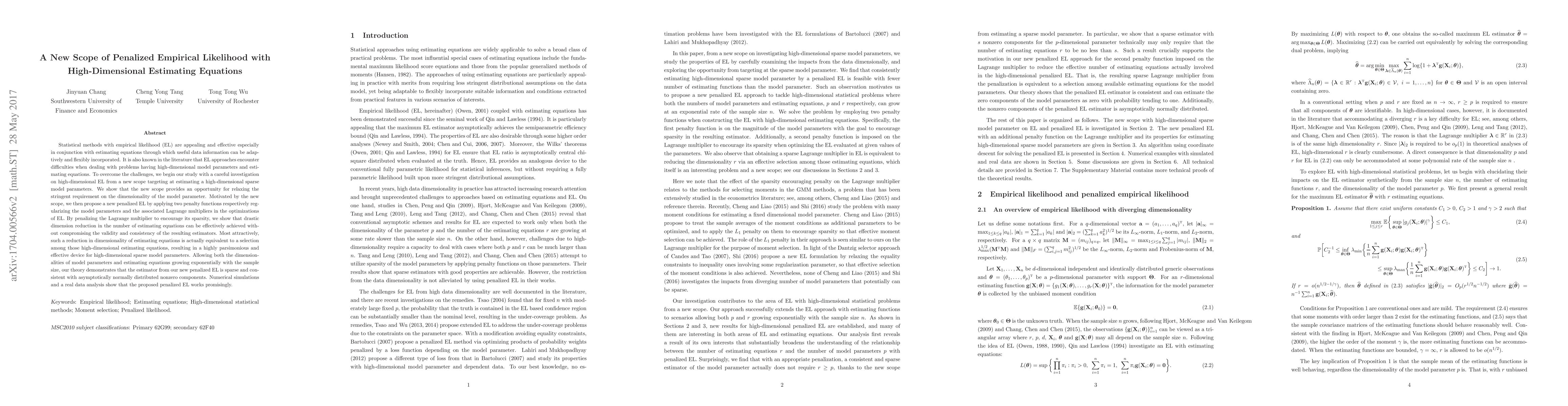 This paper introduces a new penalized empirical likelihood approach for high-dimensional estimating equations, proposing a method that effectively reduces dimensionality while maintaining estimator validity and consistency. The proposed method uses penalties to encourage sparsity, achieving significant dimension reduction without compromising the effectiveness of the estimators.