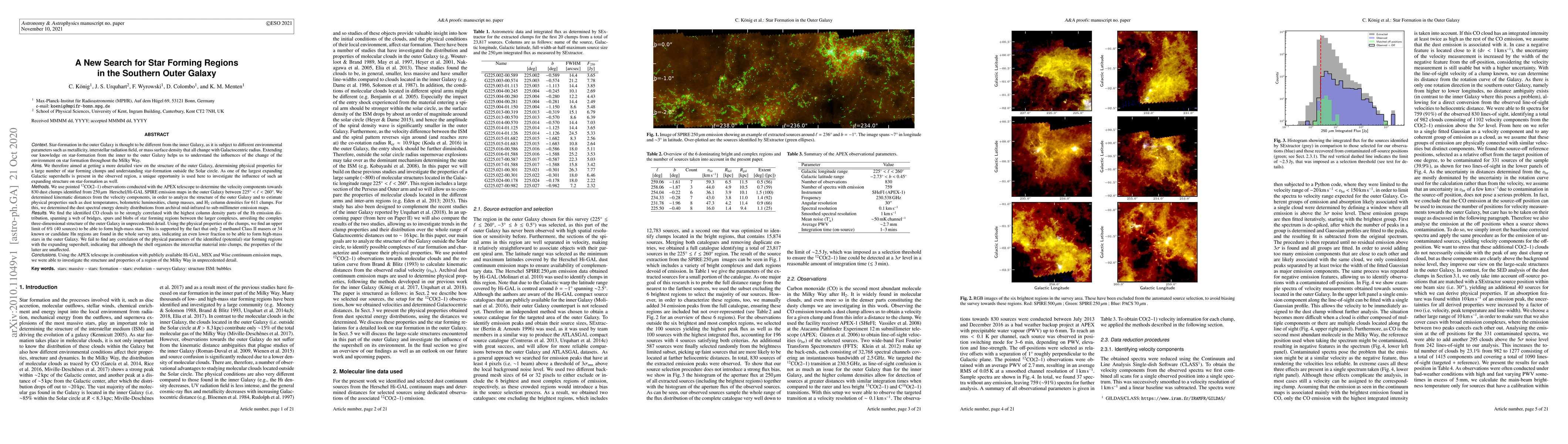 Star-formation in the outer Galaxy is thought to be different from the inner Galaxy, as it is subject to different environmental parameters such as metallicity, interstellar radiation field, or mass surface density that all change with Galactocentric radius. We therefore aimed at getting a more detailed view on the structure of the outer Galaxy, determining physical properties for a large number of star forming clumps and understanding star-formation outside the Solar circle. We use pointed $^{12}$CO(2-1) observations conducted with the APEX telescope to determine the velocity components towards 830 dust clumps identified from 250 $\mu$m Herschel/Hi-GAL SPIRE emission maps in the outer Galaxy between $225\deg<\ell<260\deg$. We determined kinematic distances from the velocity components, in order to analyze the structure of the outer Galaxy and to estimate physical properties such as dust temperatures, bolometric luminosities, clump masses, and H2 column densities for 611 clumps. We find the CO clouds to be strongly correlated with the highest column density parts of the Hi emission distribution, spanning a web of bridges, spurs and blobs of star forming regions between the larger complexes, unveiling the complex three-dimensional structure of the outer Galaxy in unprecedented detail. Using the physical properties of the clumps, we find an upper limit of 6% (40 sources) to be able to form high-mass stars. This is supported by the fact that only 2 methanol Class II masers or 34 known or candidate Hii regions are found in the whole survey area, indicating an even lower fraction to be able to form high-mass stars in the outer Galaxy. We fail to find any correlation of the physical parameters of the identified (potential) star forming regions with the expanding supershell, indicating that although the shell organizes the interstellar material into clumps, their properties are unaffected.