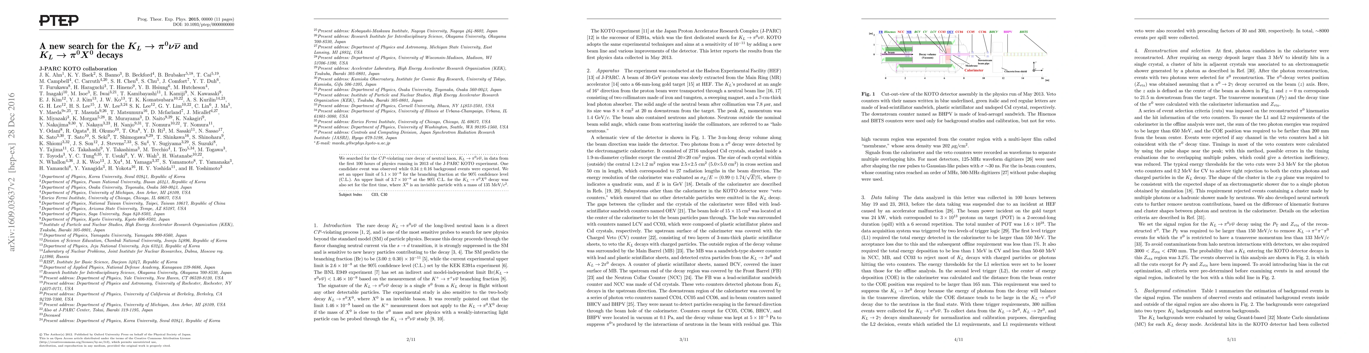 The J-PARC KOTO experiment searched for the rare $CP$-violating decay $K_{L} \to \pi^0 \nu \overline{\nu}$ and the $K_{L} \to \pi^{0} X^{0}$ decay, observing one candidate event against an expected background of $0.34\pm0.16$. Upper limits of $5.1\times10^{-8}$ and $3.7\times10^{-8}$ were set for these decays at 90% confidence level.