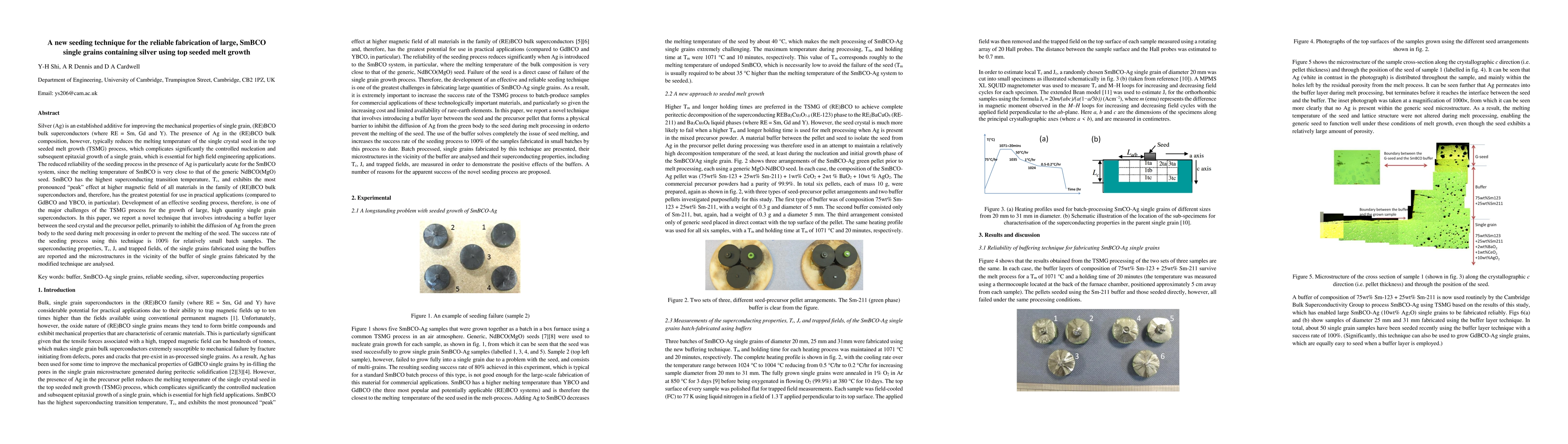 This paper introduces a novel seeding technique using a buffer layer to reliably fabricate large, Ag-containing SmBCO single grains via the top seeded melt growth process, addressing the challenge of Ag-induced seed melting. The technique achieves a 100% success rate and maintains the superconducting properties of SmBCO.