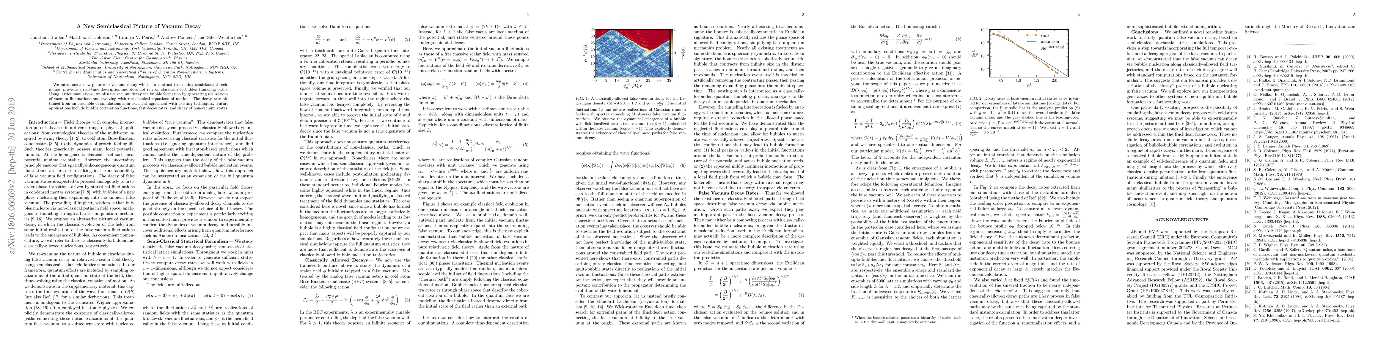 This paper presents a novel semiclassical approach to vacuum decay that offers a real-time description without relying on classically forbidden tunneling paths. It employs lattice simulations to observe vacuum decay via bubble formation, achieving decay rates consistent with existing methods.