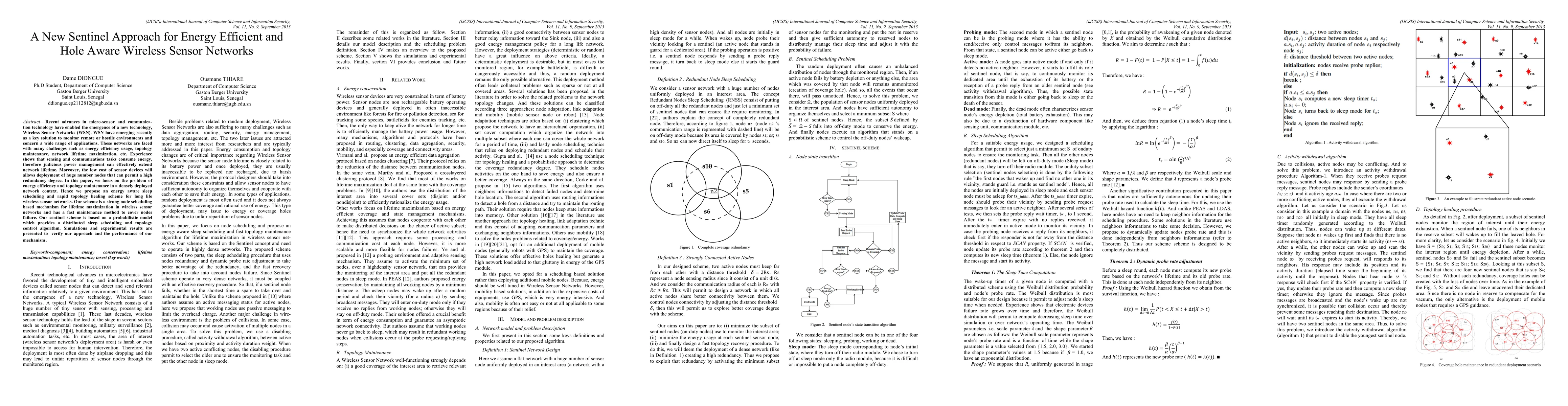 This paper proposes an energy-efficient sentinel approach for wireless sensor networks that employs sleep scheduling and rapid topology healing to maximize network lifetime and maintain network topology in densely deployed environments. The probabilistic model-based mechanism ensures distributed control and effective fault recovery.