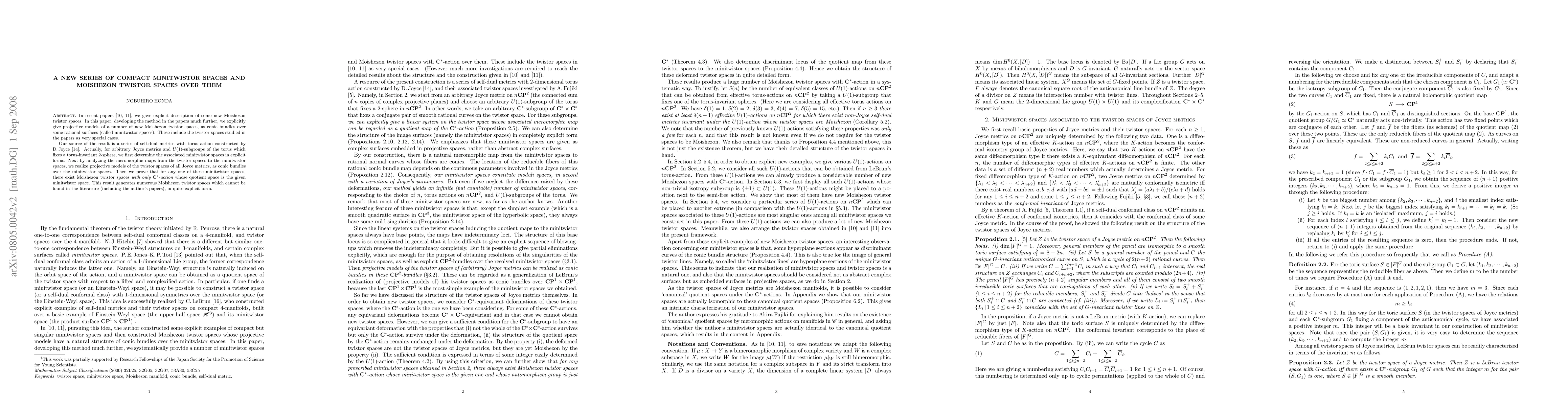 This paper develops new methods to explicitly describe projective models of several Moishezon twistor spaces as conic bundles over minitwistor spaces, building on previous work. It leverages self-dual metrics with torus action by D. Joyce to generate numerous previously unfound Moishezon twistor spaces in explicit form.