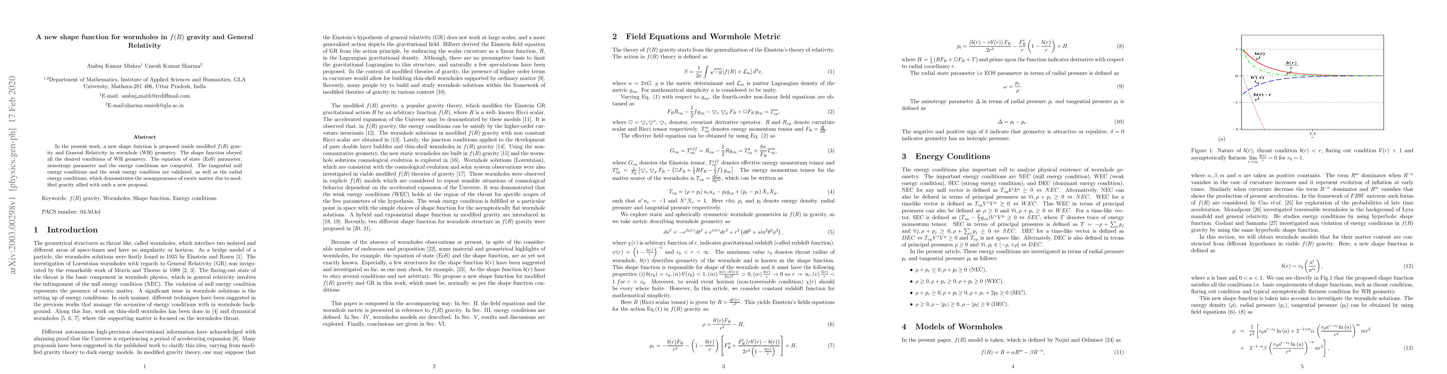 In the present work, a new shape function is proposed inside a modified $f(R)$ gravity and General Relativity in wormhole (WH) geometry. The shape function obeyed all the desired conditions of WH geometry. The equation of state (EoS) parameter, anisotropy parameter and the energy conditions are computed. The tangential null energy conditions and the weak energy condition are validated, as well as the radial energy conditions, which demonstrates the nonappearance of exotic matter due to modified gravity allied with such a new proposal.