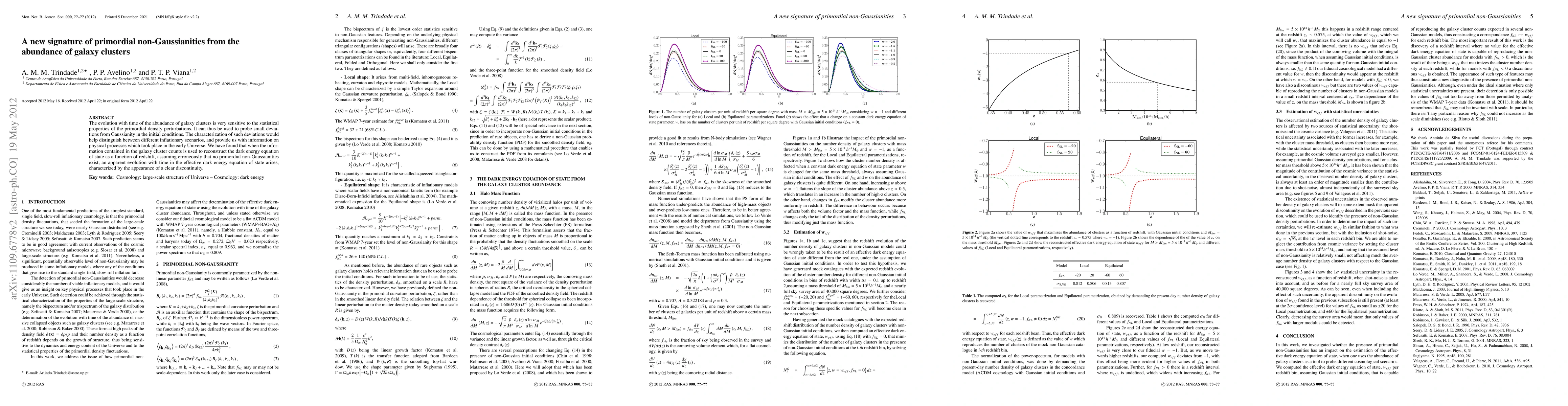The evolution with time of the abundance of galaxy clusters is very sensitive to the statistical properties of the primordial density perturbations. It can thus be used to probe small deviations from Gaussianity in the initial conditions. The characterization of such deviations would help distinguish between different inflationary scenarios, and provide us with information on physical processes which took place in the early Universe. We have found that when the information contained in the galaxy cluster counts is used to reconstruct the dark energy equation of state as a function of redshift, assuming erroneously that no primordial non-Gaussianities exist, an apparent evolution with time in the effective dark energy equation of state arises,characterized by the appearance of a clear discontinuity.