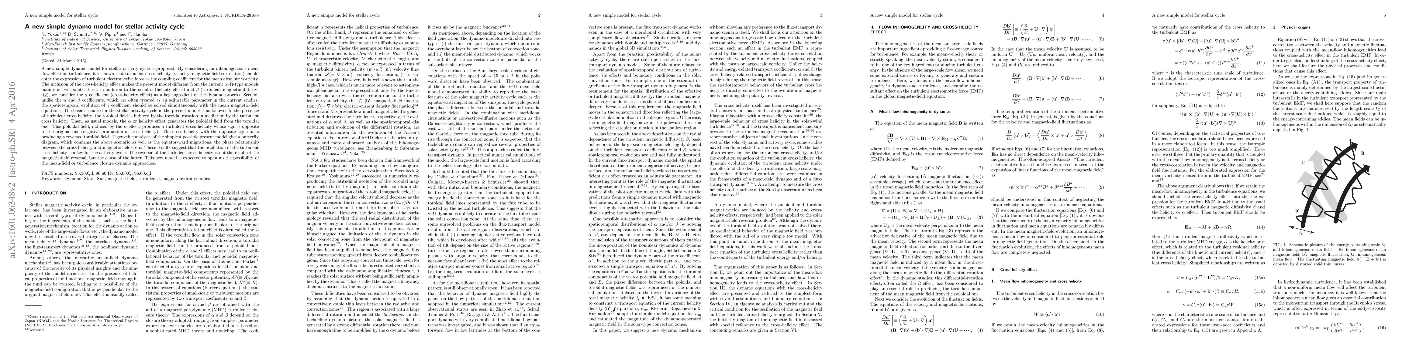 A new dynamo model for stellar activity cycles is proposed, incorporating turbulent cross helicity (velocity-magnetic-field correlation) as a key factor. This model introduces a $gamma$ coefficient alongside $alpha$ and $eta$, solving its spatiotemporal evolution with mean magnetic-field equations. The model explains activity cycle oscillations, with turbulent cross helicity reversal causing magnetic field reversals, not the other way around.
