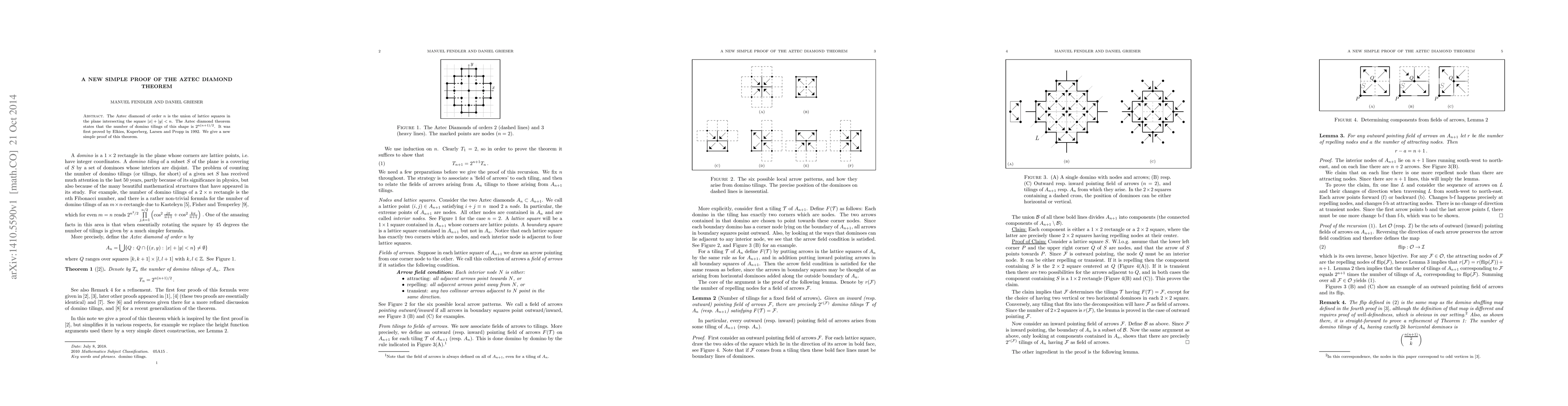 This paper presents a new simple proof of the Aztec diamond theorem, which states that domino tilings of an Aztec diamond shape can be counted using $2^{n(n+1)/2}$.