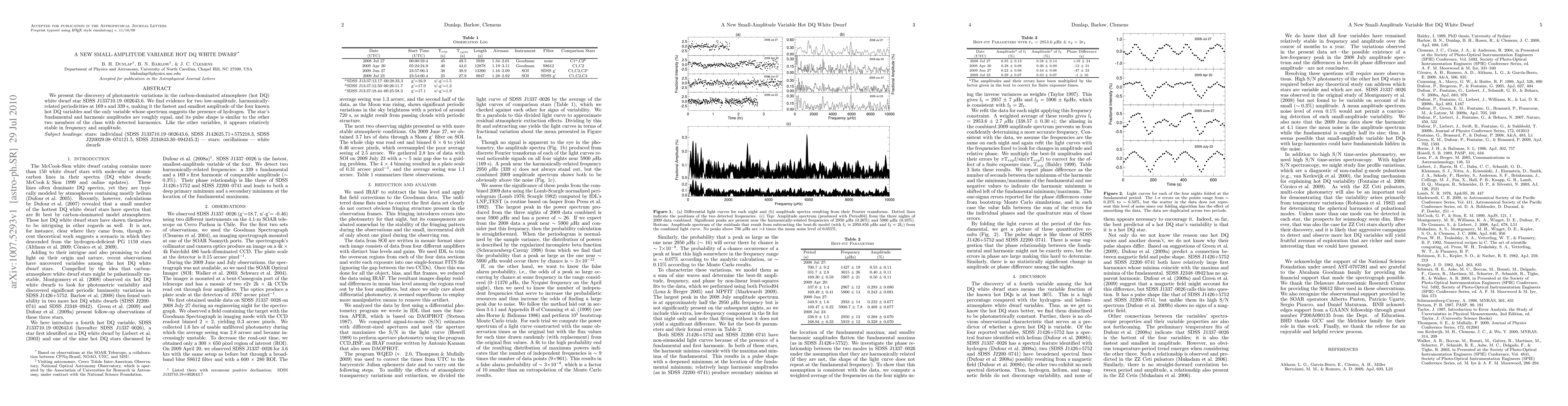 The paper reports the discovery of photometric variations in the hot DQ white dwarf SDSS J133710.19-002643.6, revealing two low-amplitude, harmonically-related periodicities, making it the fastest and smallest amplitude of known hot DQ variables. The star's unique spectrum suggests the presence of hydrogen.