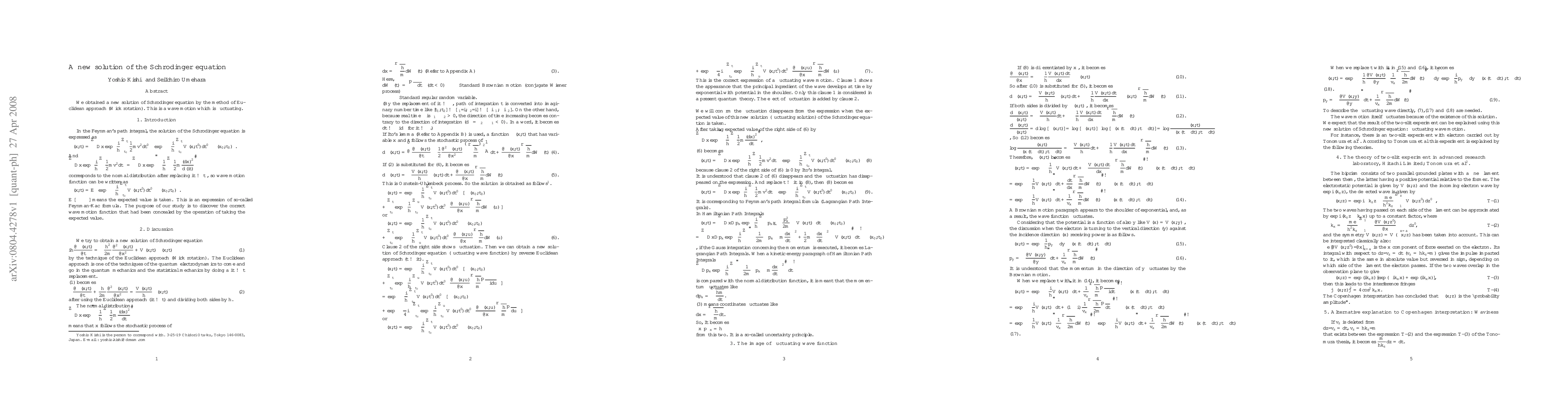 The paper presents a novel solution to the Schrödinger equation using the Euclidean approach (Wick rotation), revealing a fluctuating wave motion.