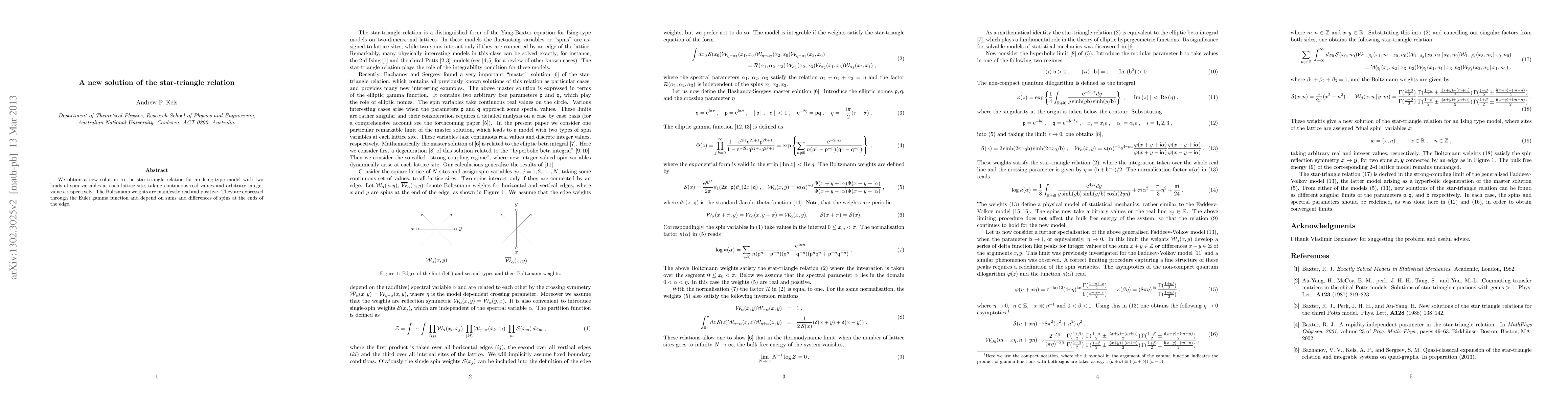 Summary: This paper presents a novel solution to the star-triangle relation for an Ising-type model featuring dual spin variables, with weights expressed via the Euler gamma function and dependent on spin sums and differences. The solution maintains real and positive Boltzmann weights.