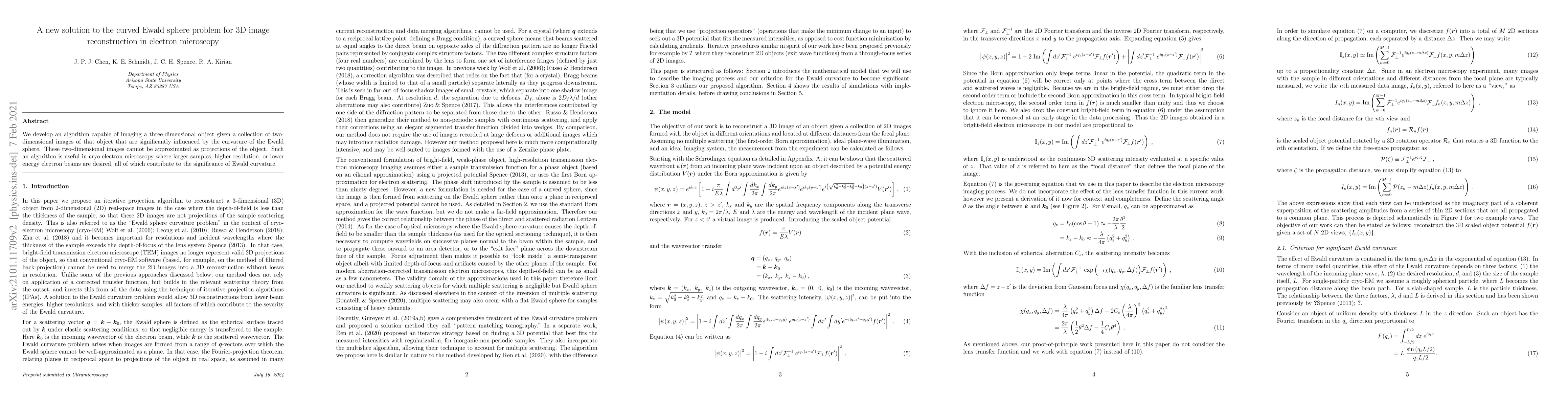 We develop an algorithm capable of imaging a three-dimensional object given a collection of two-dimensional images of that object that are significantly influenced by the curvature of the Ewald sphere. These two-dimensional images cannot be approximated as projections of the object. Such an algorithm is useful in cryo-electron microscopy where larger samples, higher resolution, or lower energy electron beams are desired, all of which contribute to the significance of Ewald curvature.