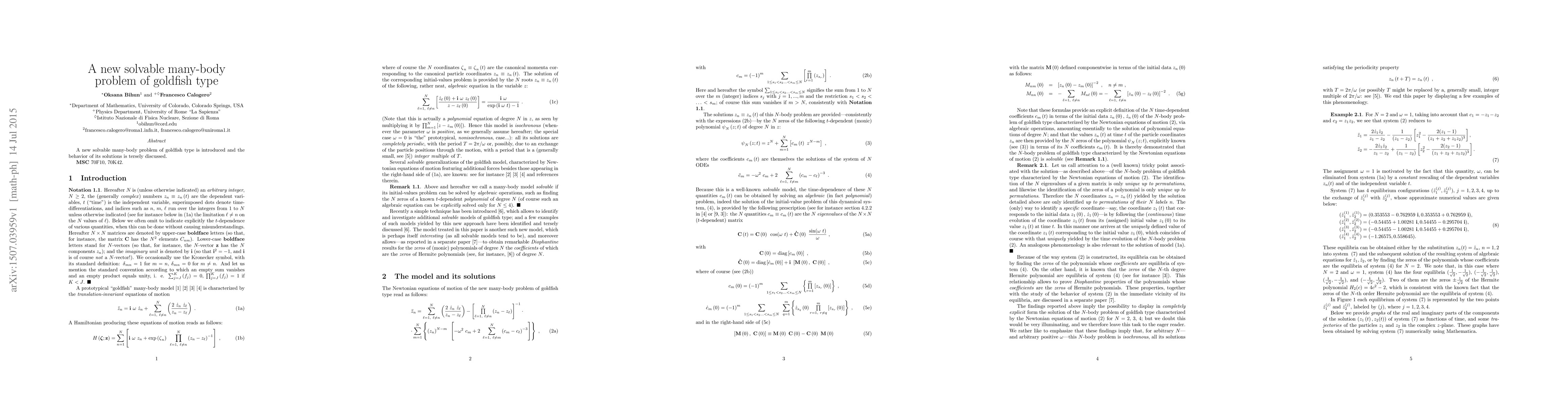 This paper introduces a novel solvable many-body problem resembling goldfish interactions, providing concise insights into the behavior of its solutions. The study offers a new perspective on understanding complex systems through simplified models.