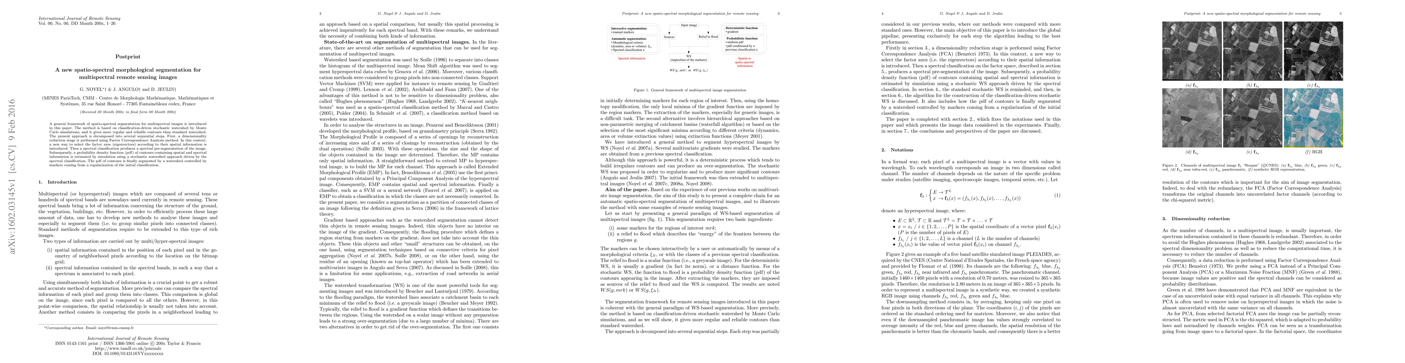 A general framework of spatio-spectral segmentation for multi-spectral images is introduced in this paper. The method is based on classification-driven stochastic watershed (WS) by Monte Carlo simulations, and it gives more regular and reliable contours than standard WS. The present approach is decomposed into several sequential steps. First, a dimensionality-reduction stage is performed using the factor-correspondence analysis method. In this context, a new way to select the factor axes (eigenvectors) according to their spatial information is introduced. Then, a spectral classification produces a spectral pre-segmentation of the image. Subsequently, a probability density function (pdf) of contours containing spatial and spectral information is estimated by simulation using a stochastic WS approach driven by the spectral classification. The pdf of the contours is finally segmented by a WS controlled by markers from a regularization of the initial classification.