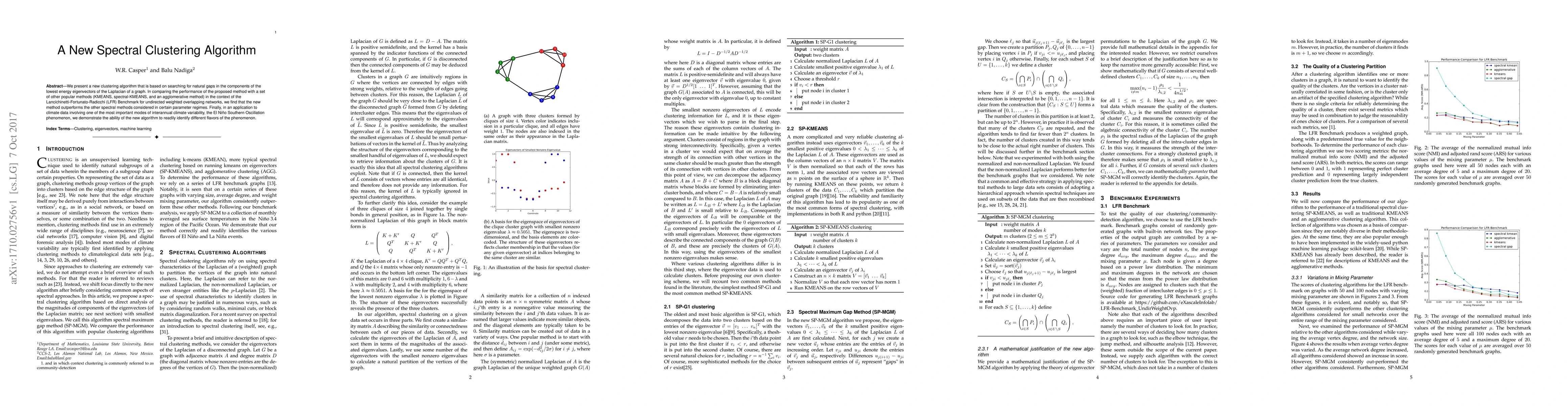 We present a new clustering algorithm that is based on searching for natural gaps in the components of the lowest energy eigenvectors of the Laplacian of a graph. In comparing the performance of the proposed method with a set of other popular methods (KMEANS, spectral-KMEANS, and an agglomerative method) in the context of the Lancichinetti-Fortunato-Radicchi (LFR) Benchmark for undirected weighted overlapping networks, we find that the new method outperforms the other spectral methods considered in certain parameter regimes. Finally, in an application to climate data involving one of the most important modes of interannual climate variability, the El Nino Southern Oscillation phenomenon, we demonstrate the ability of the new algorithm to readily identify different flavors of the phenomenon.