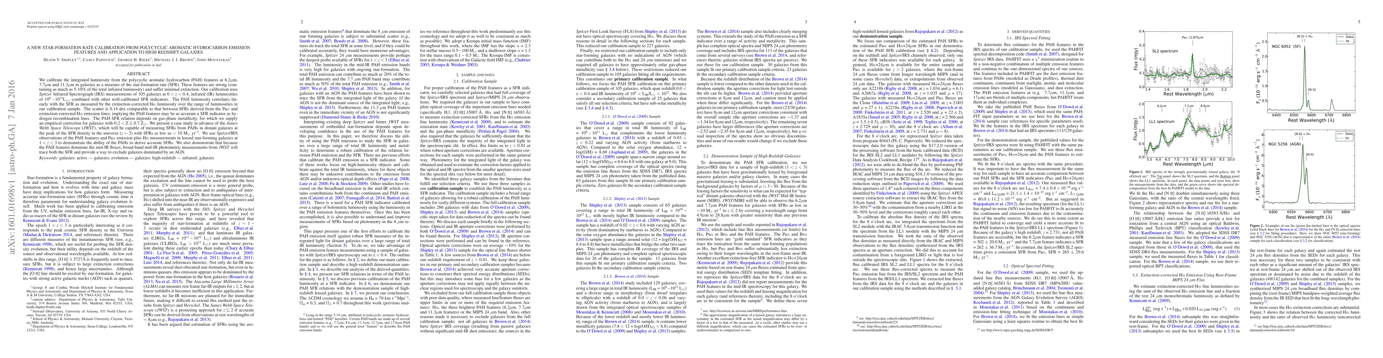 This paper calibrates star-formation rates (SFRs) using polycyclic aromatic hydrocarbon (PAH) emission features, demonstrating their accuracy comparable to hydrogen recombination lines. The study uses \spitzer\ data and shows PAHs can trace SFRs in high-redshift galaxies, providing a method to distinguish star-forming galaxies from those with active galactic nuclei.