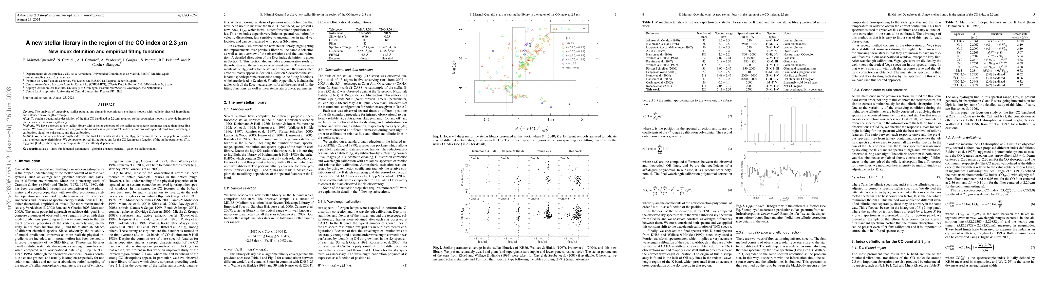 This paper introduces a new stellar library and defines a refined CO index, D$_{\rm CO}$, at 2.3 $\mu$m, enhancing the accuracy of stellar population models in this wavelength range. Empirical fitting functions are provided to describe the CO feature's dependence on stellar parameters.